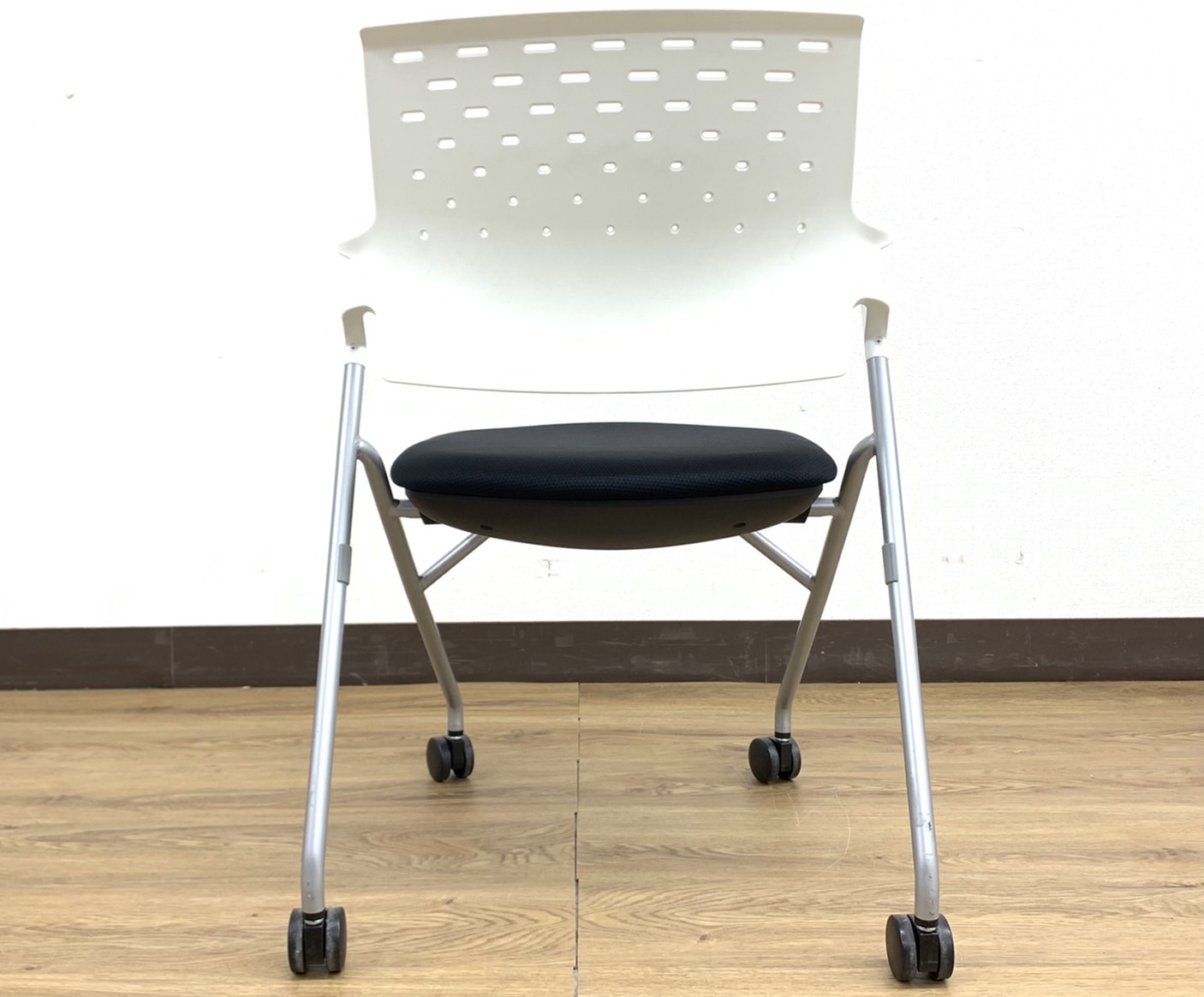 【10脚揃います】ネスティングチェア⇒ブラック&ホワイトシンプルデザインコスパ高◆コクヨ製【RP】- 埼玉本店