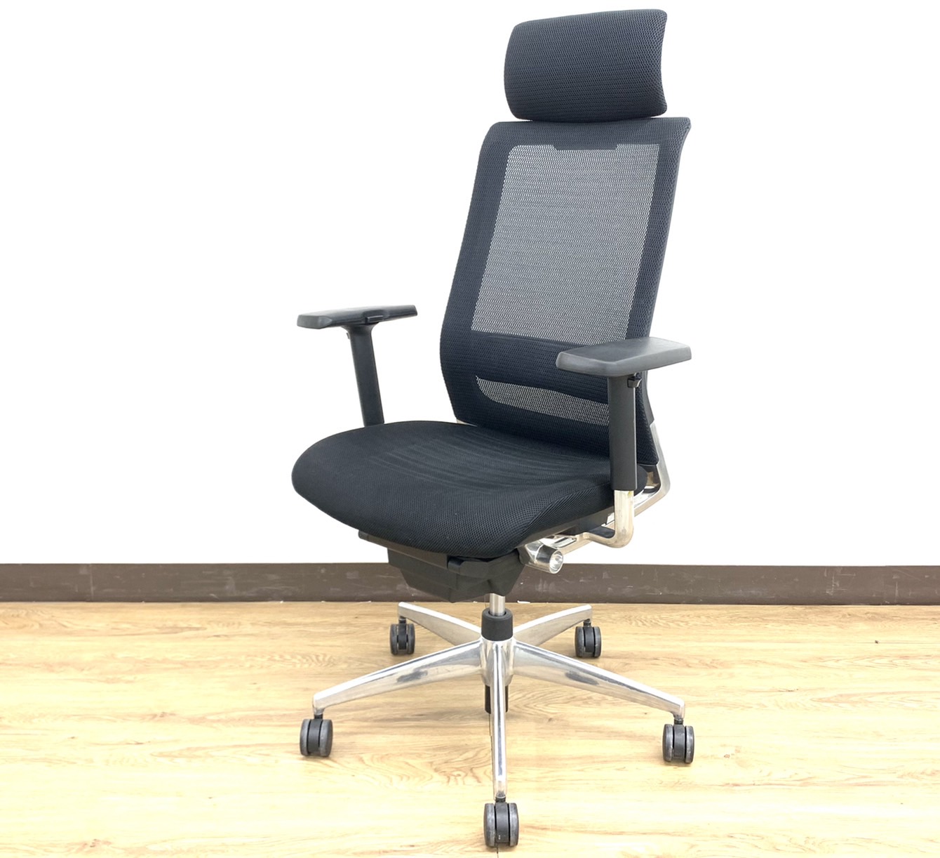 【6脚入荷】漢仕様オールブラックエアフォート(Airfort)新品ヘッドレスト付き蓮田初入店※可動肘つき◆コクヨ製【RP】- 埼玉本店