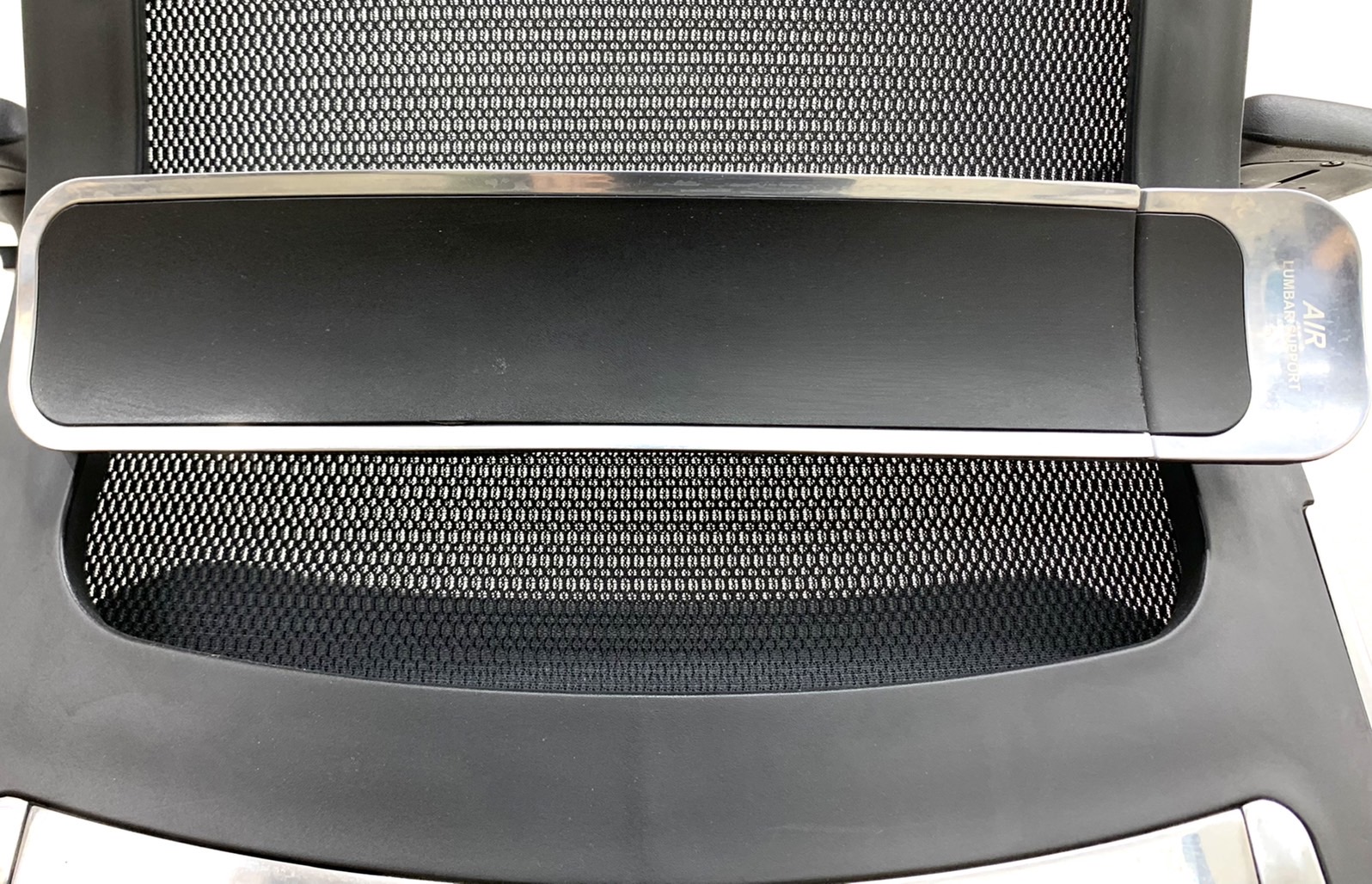 なんと、エアバッグをランバー部分に採用しており、レバーを前後するだけの簡単操作で、文字通りエアバッグのように空気を注入して腰部をささえることができちゃうのです!