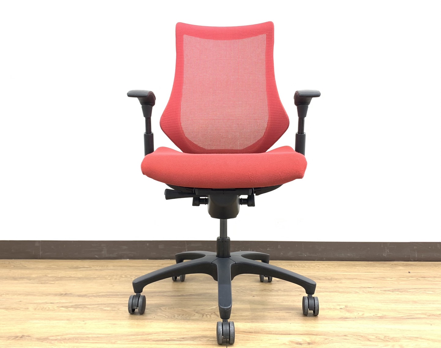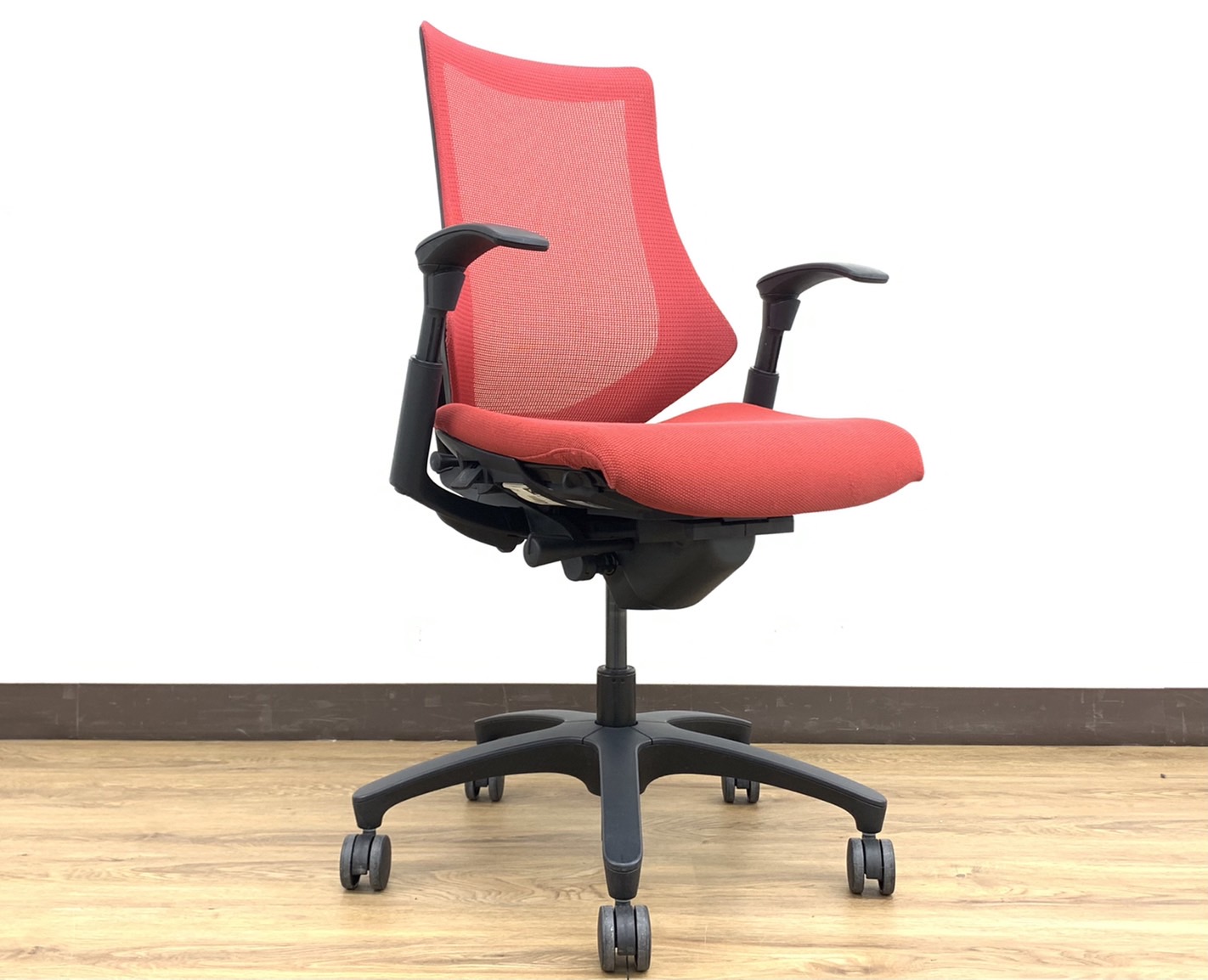 【2016年製】Aランク状態良好明るいラズベリーレッドカラー⇒エフ(F)チェア※可動肘掛け仕様◆イトーキ製【RP】サーキュラーバリューCO2削減量の算出について