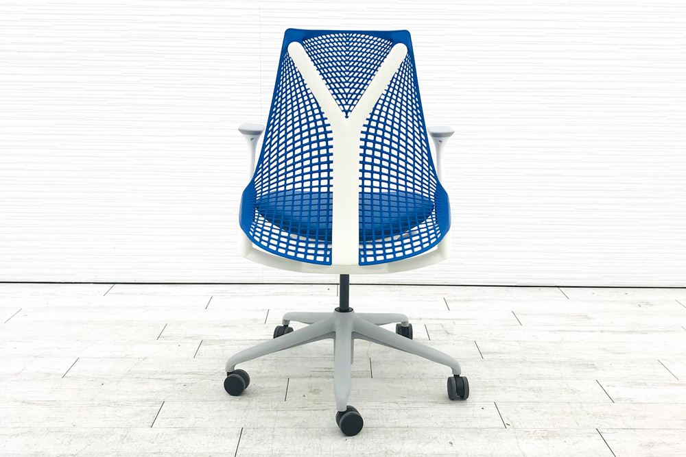 【KS】【上質で美しいデザイン!】■ハーマンミラー セイルチェア ブルー 固定肘 前傾チルト無し フレーム日焼けアリのためお安く 倉庫在庫品【O】2300- 茨城南店