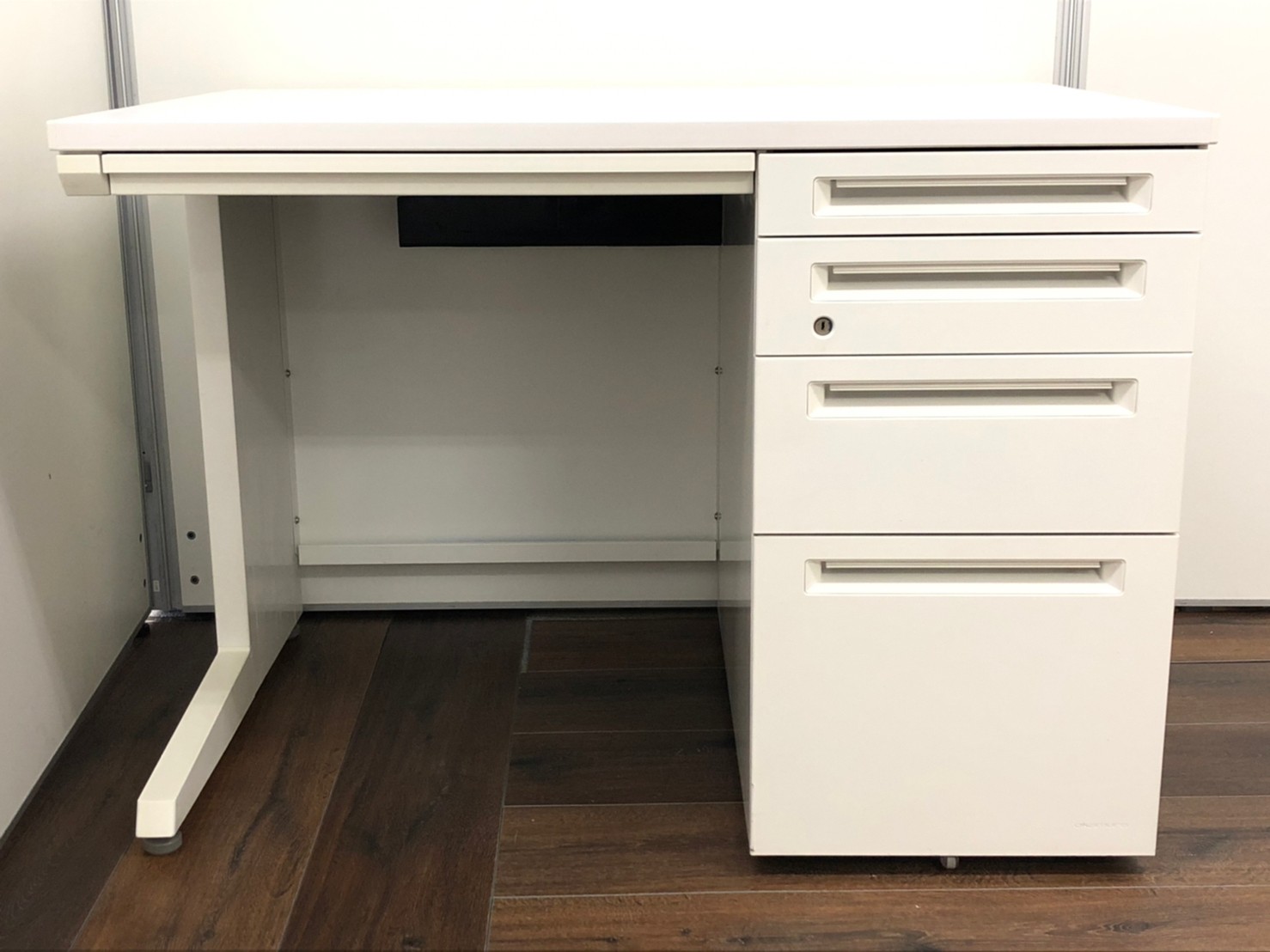 【KS】【収納便利な4段引出しタイプ!】■オカムラ製 片袖デスク W1000mm ホワイト ■高品質で人気のアドバンスシリーズ!【おつとめ品】在庫入替- 茨城南店