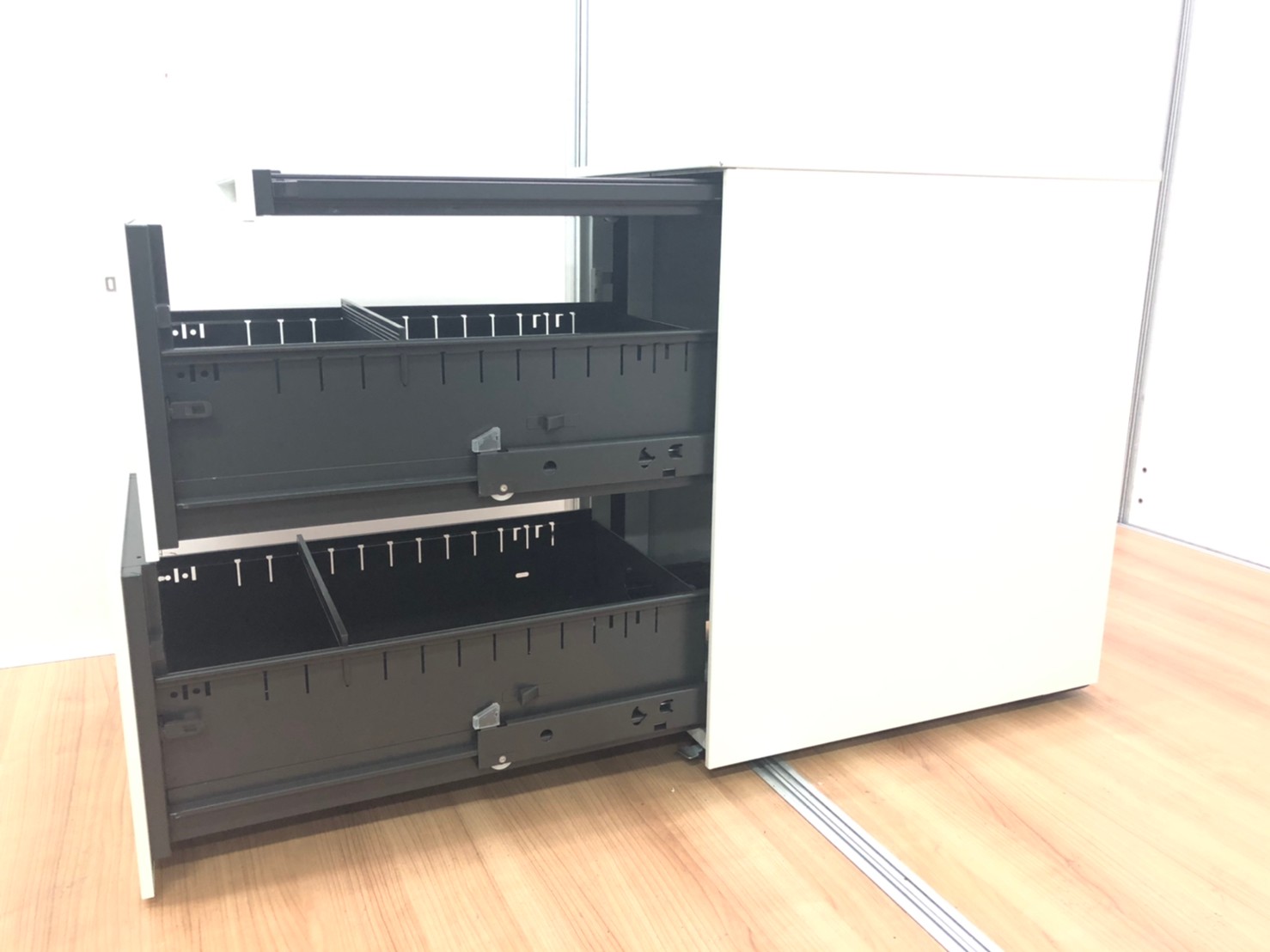 ☆H650mm!【スタイリッシュなデザインで使いやすい!】■オカムラ製 3段ワゴン ネオホワイト フロント把手 シリンダー錠 ■A4サイズのファイルもたっぷり収納できる!【ハイワゴン】