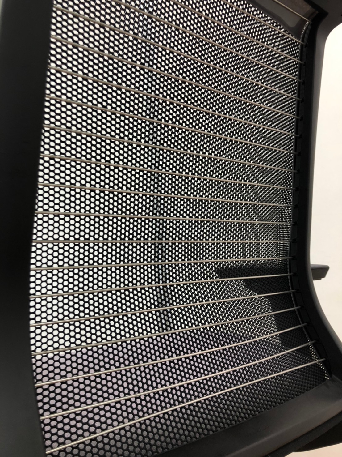 特徴的な背のワイヤーは体重を掛けると適度に分散し、体の負担を軽減します。