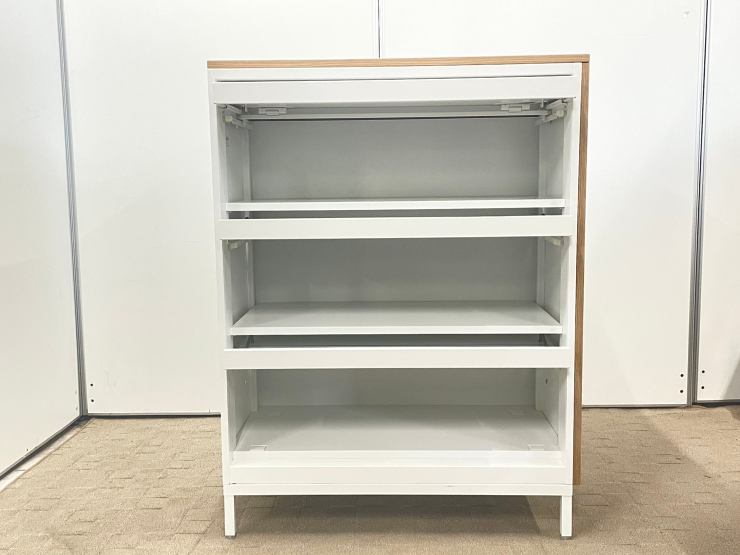 【中古品では珍しい!コクヨ製・3段雑誌架タイプ!】【雑誌・パンフレッド等々、扉を開けると収納でき、オフィスの雰囲気を変えたい方におすすめ!!】■コクヨ(KOKUYO) エディアシリーズ 雑誌架 3段 ローキャビネット ■本体ホワイト【2506】弊社使用欄【A01018642】