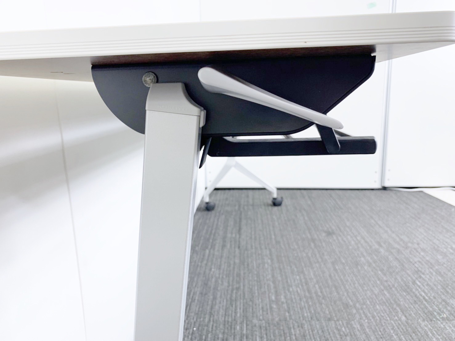 【折りたたみ収納が秀逸!スタイリッシュなデザインで高品質!】■コクヨ(KOKUYO)製 リーフラインシリーズ サイドスタックテーブル フラップタイプ W1200×D450㎜ ■キャスター・幕板付 ■ホワイト