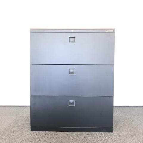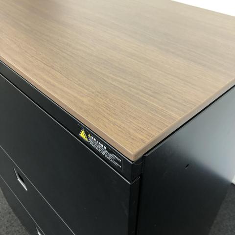 【超レアなブラック色!】オカムラ製/レクトラインシリーズ珍しいブラックカラー/ブラウン天板付き/3段ラテラル【BKNA】