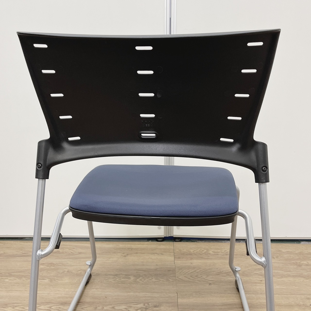 【定価6万円】【ソフトベンディングシェルが背を優しく受け止める!】■イトーキ(ITOKI) マノスチェア(MANOSS) 肘無し スタッキングチェア ミーティングチェア ■背パッド付 ■キャスター脚 ■ブルー