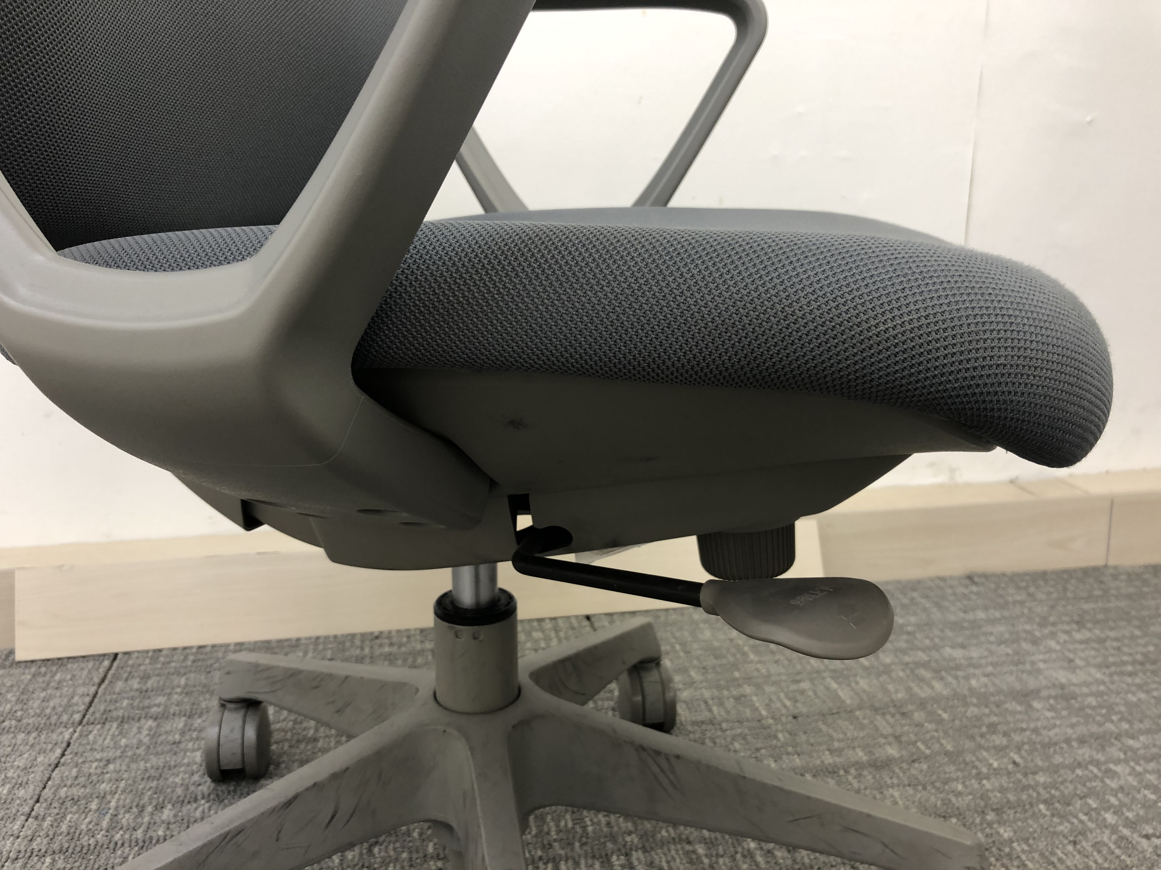 なので、「どれでも同じでしょう」と過小評価されがちですが、さすがのオカムラ製!座面の無段階上下調整やリクライニングの反発の強さ調整などに加え、リクライニンする際に足首の位置を支点にして動く、アンクルチルトリクライニングという特殊な機構が搭載されています。「人間が寄りかかる動き」にぴったりとフィットし、快適さをもたらしてくれます。