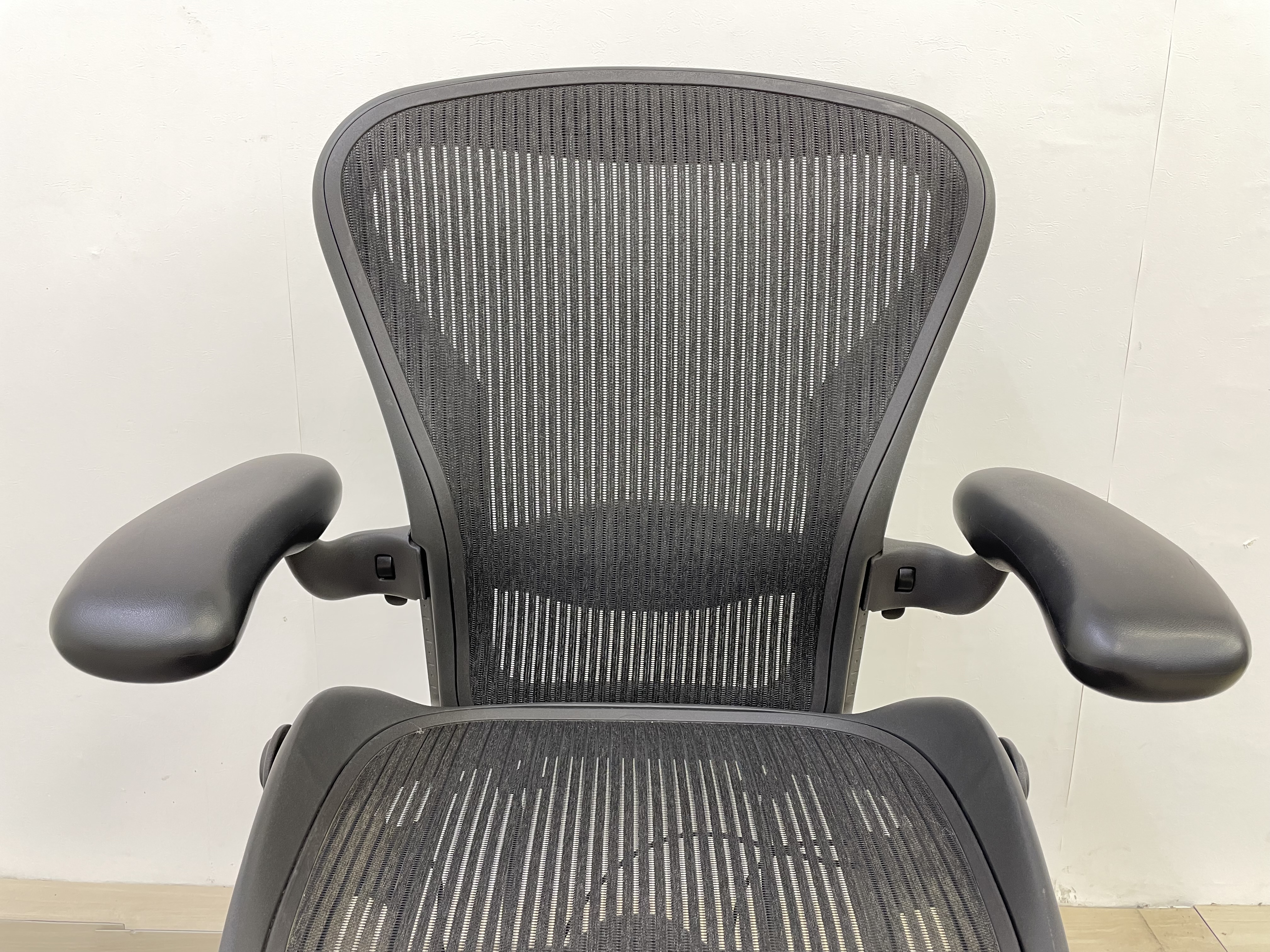 【★状態イマイチのためお安く!】■ハーマンミラー製 アーロンチェア Bサイズ 固定肘 ※キズあり・ランバーサポート無・昇降ガス圧弱めのためお安く!【訳あり特価品】