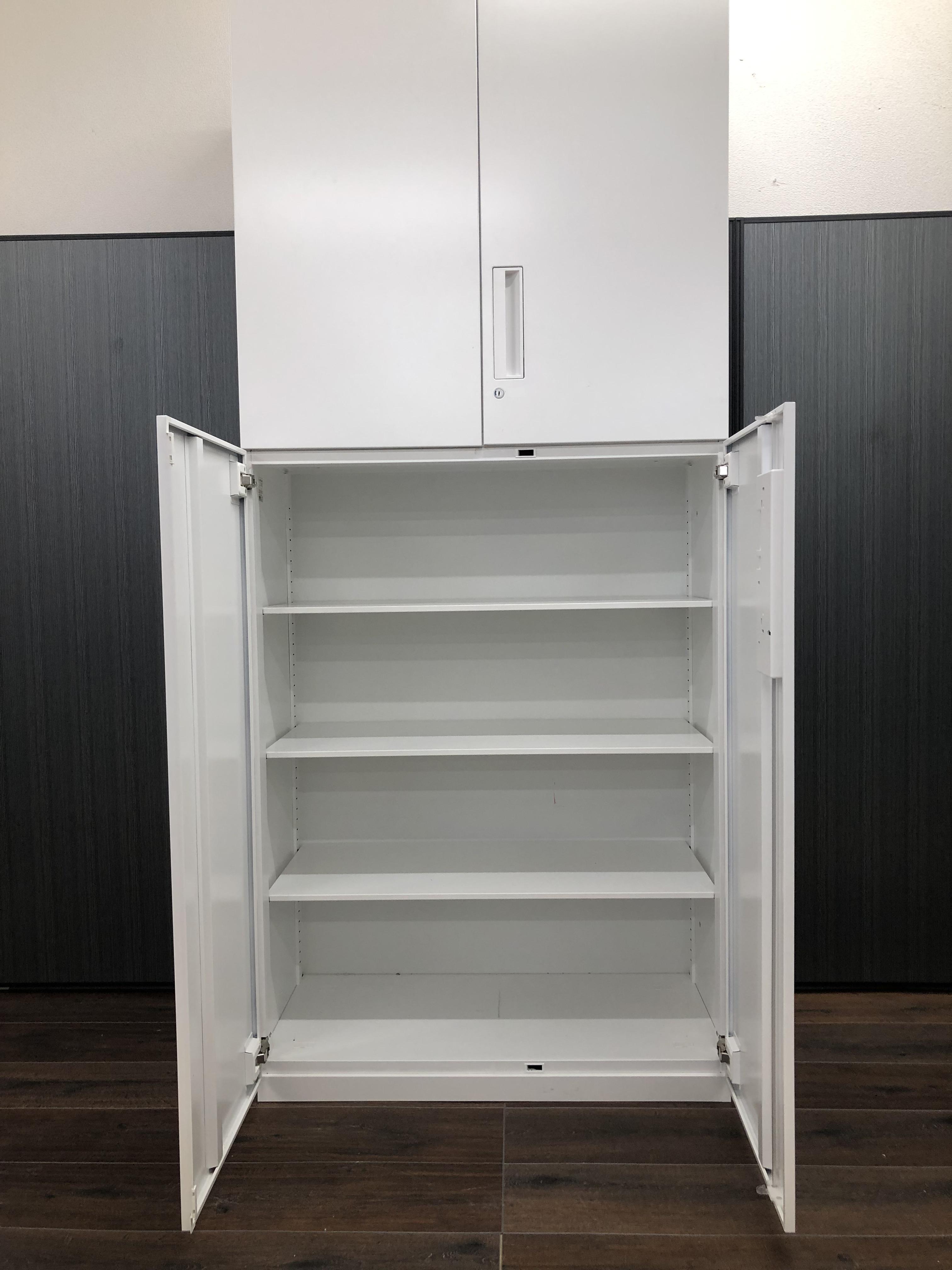 【オフィスの書類をまとめて整理!希少な両開き+引き違い書庫セットが入荷!!】■コクヨ(KOKUYO)製 エディアシリーズ 両開き+引き違い 書庫セット H2015㎜ ■2枚扉 ■シリンダー錠 ■ホワイト【AD】