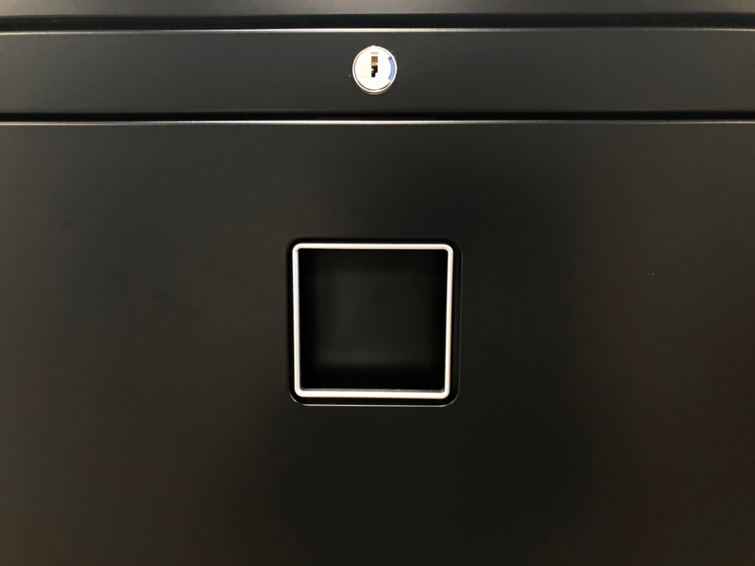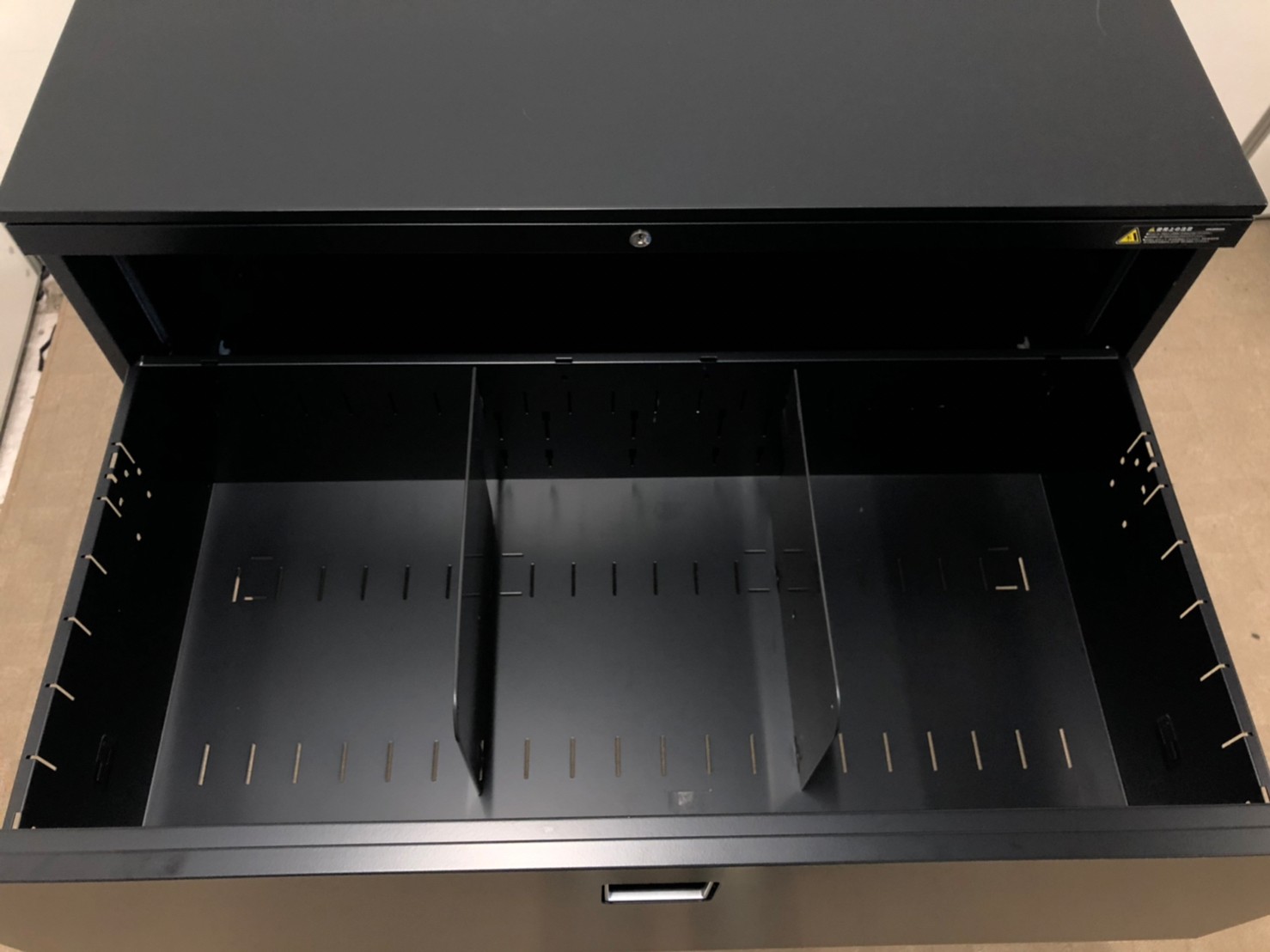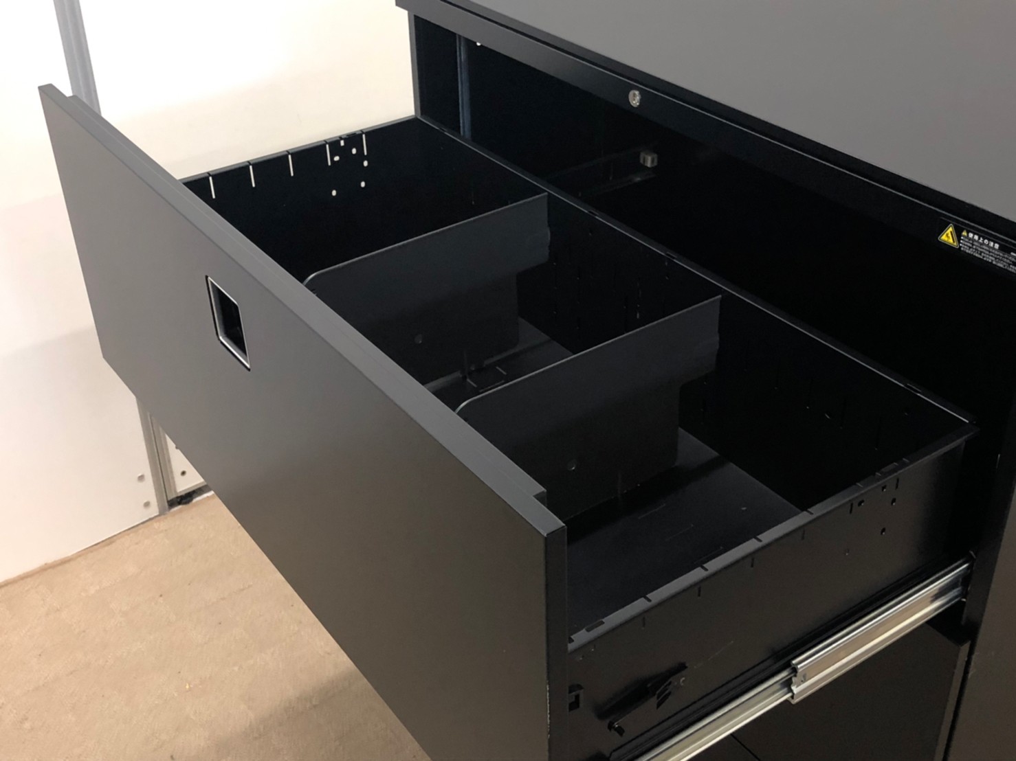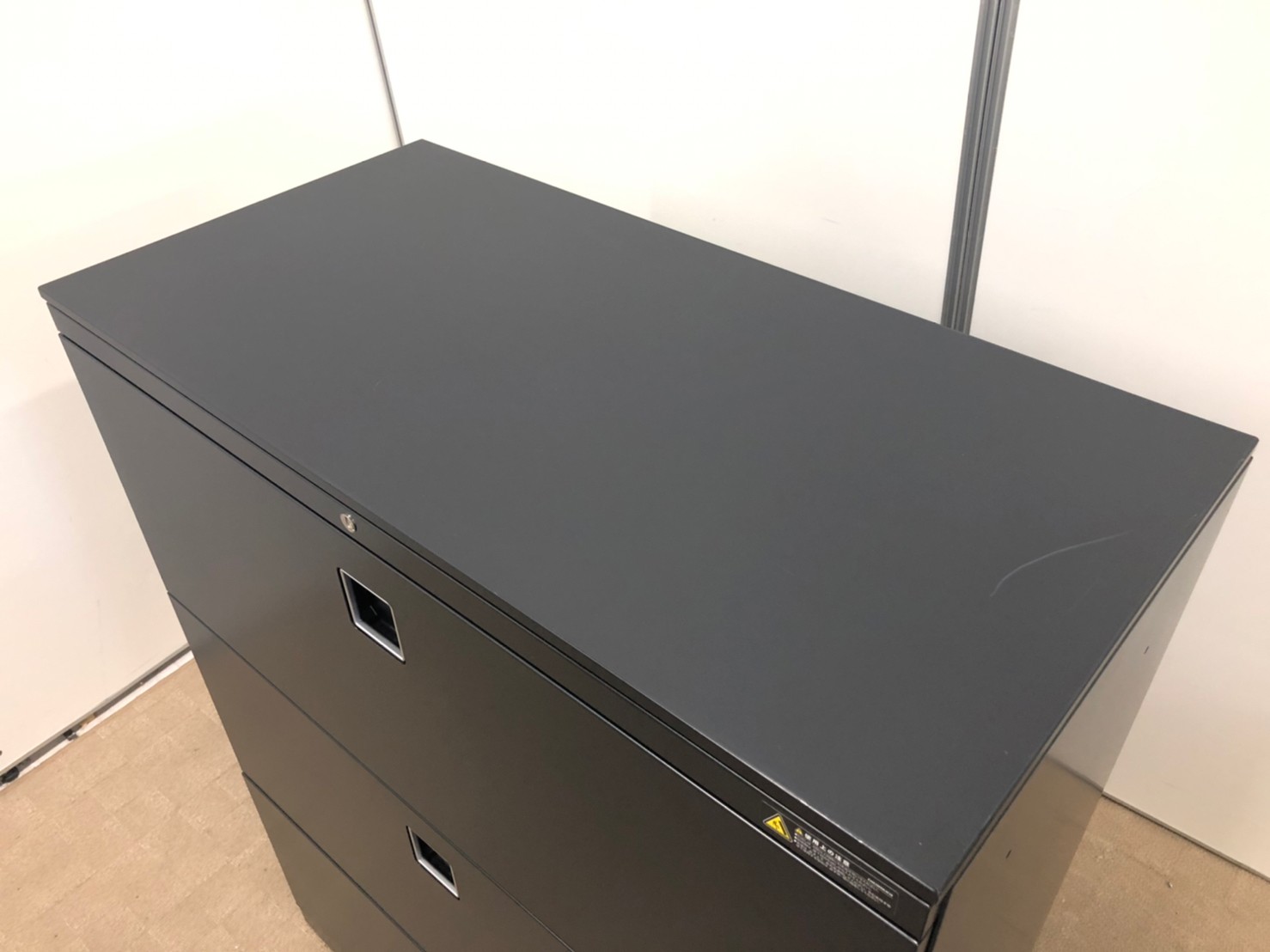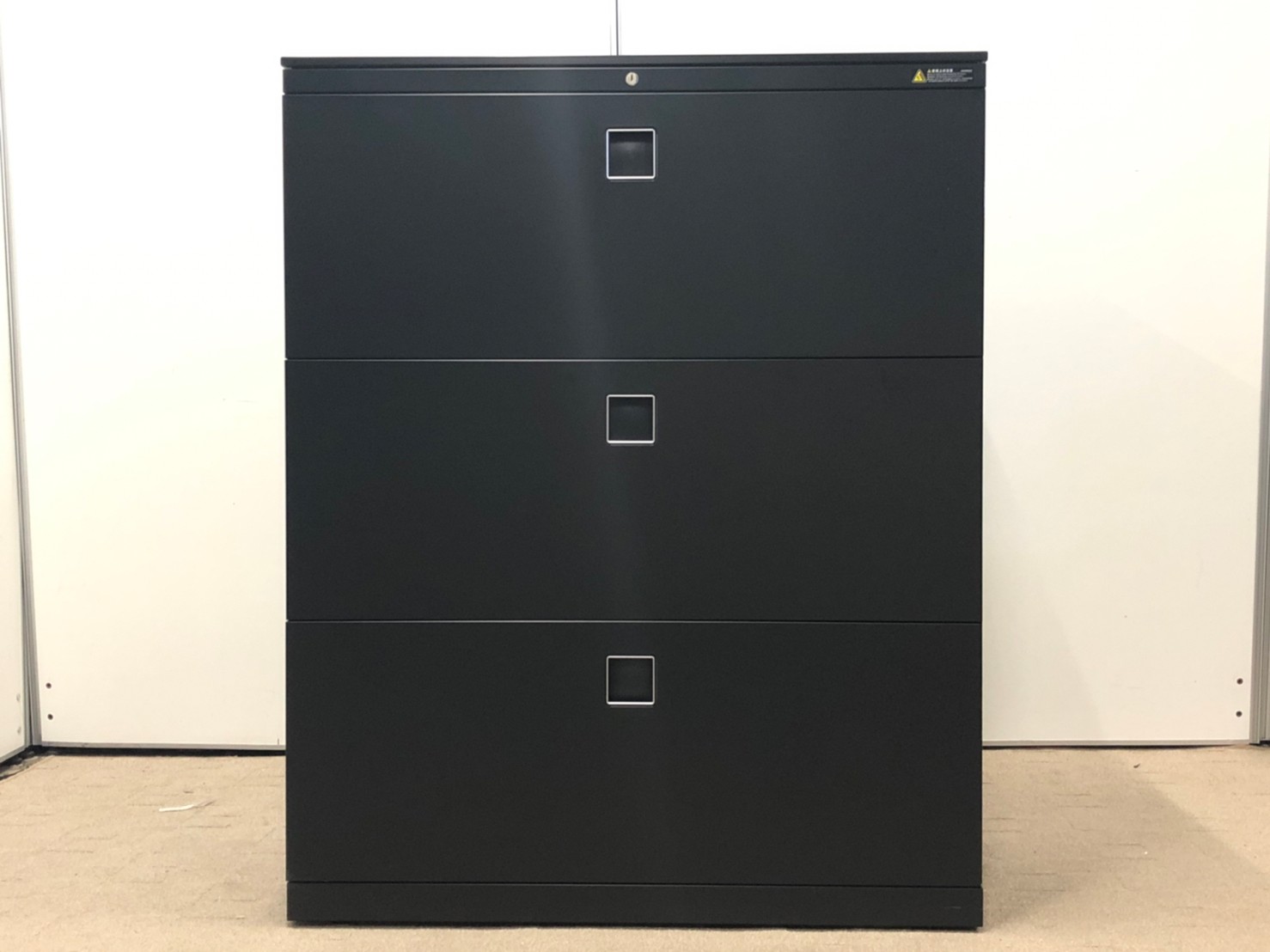 【超レアなブラック色!】オカムラ製/レクトラインシリーズ珍しいブラックカラー/ブラウン天板付き/3段ラテラル【BKNA】