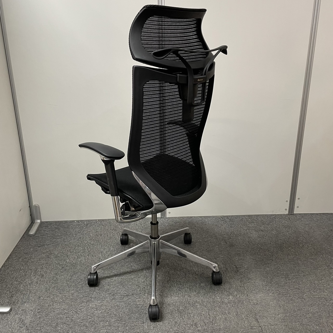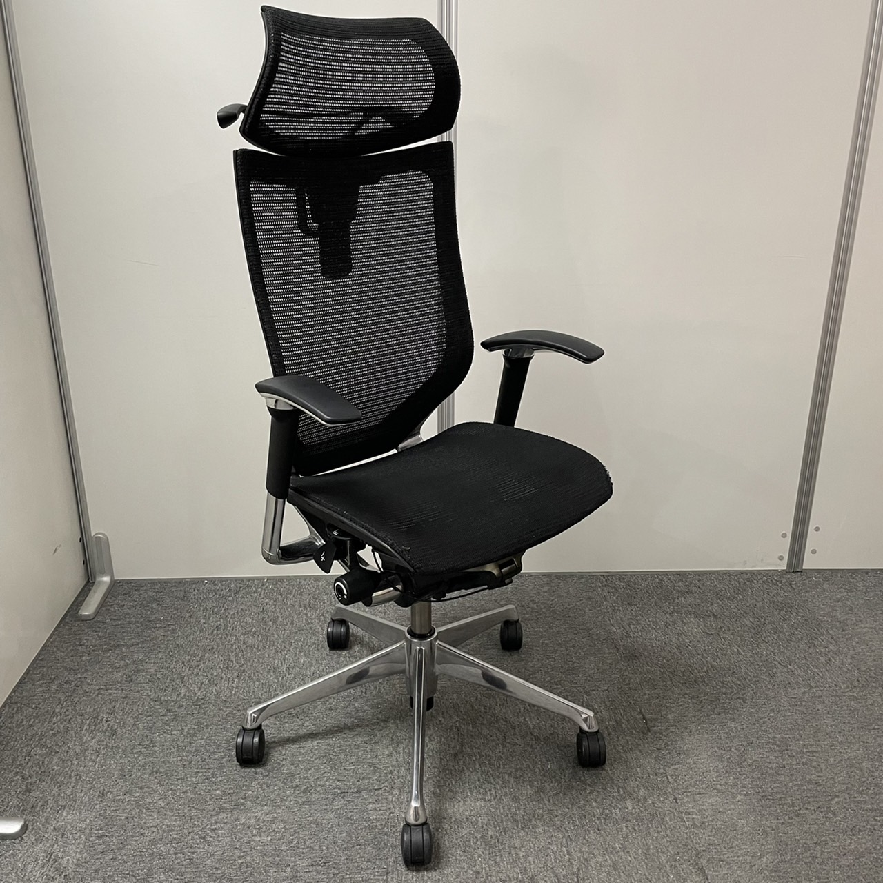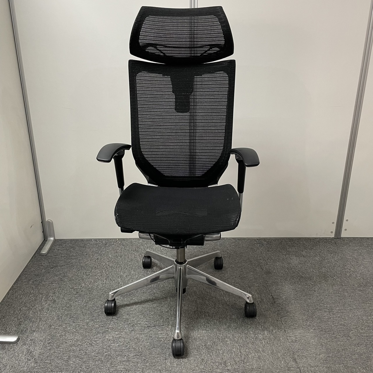 【2018年製】オカムラ バロンチェア エクストラハイバックモデル 座:メッシュ 背:メッシュ シルバーフレーム アジャストアーム 可動ヘッドレスト搭載 ※座面ヨレあり