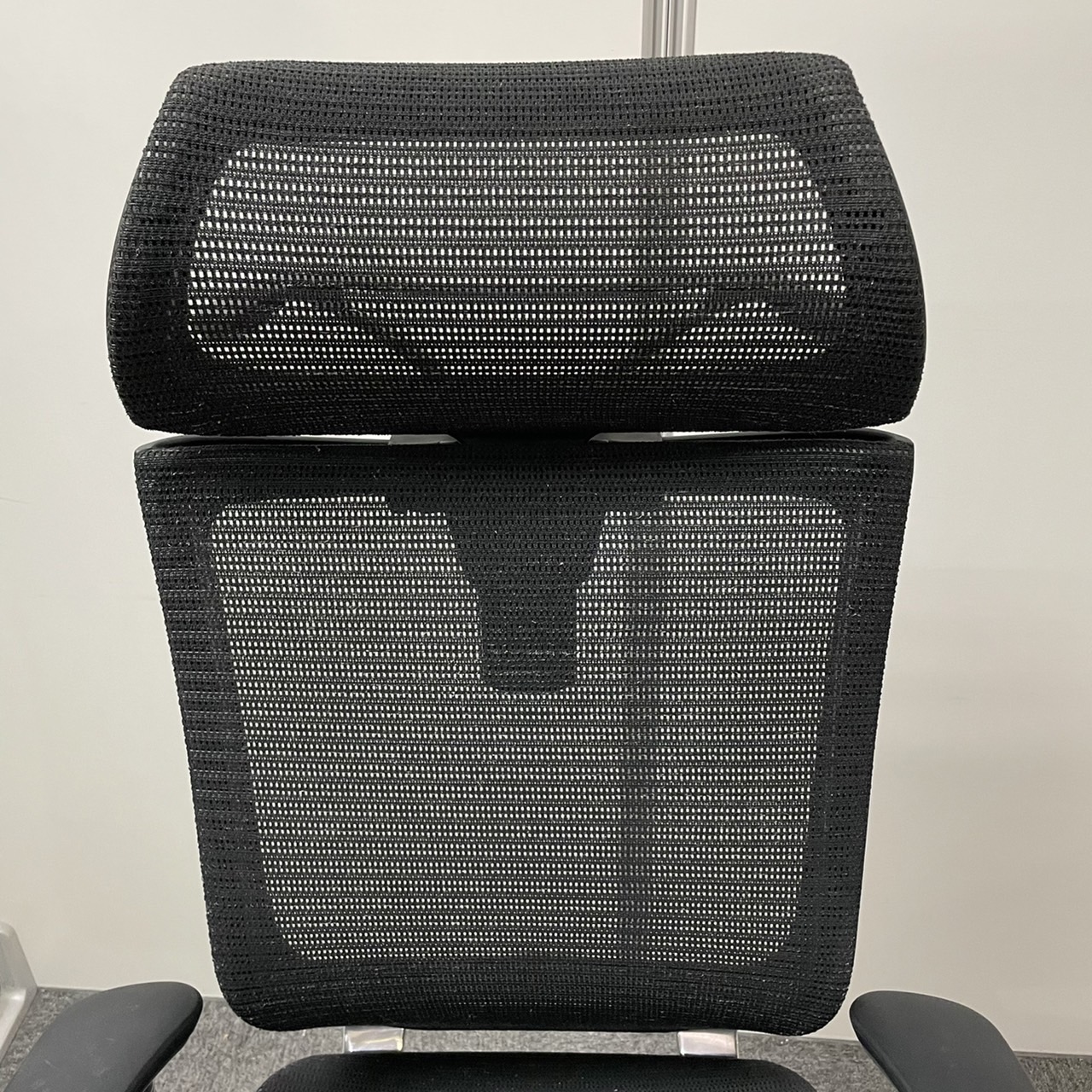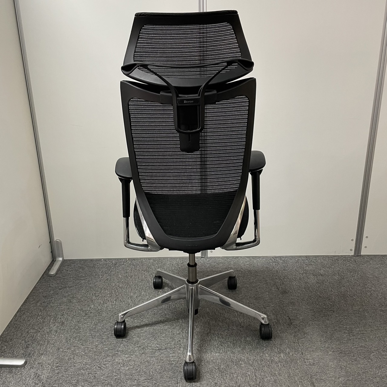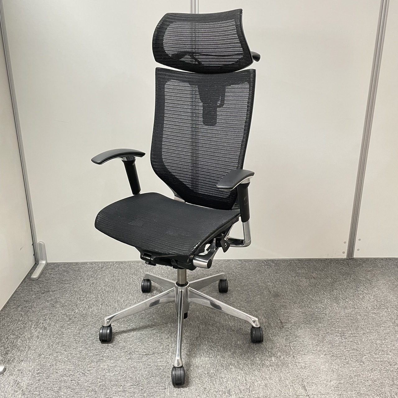 【2018年製】オカムラ バロンチェア エクストラハイバックモデル 座:メッシュ 背:メッシュ シルバーフレーム アジャストアーム 可動ヘッドレスト搭載 ※座面ヨレあり