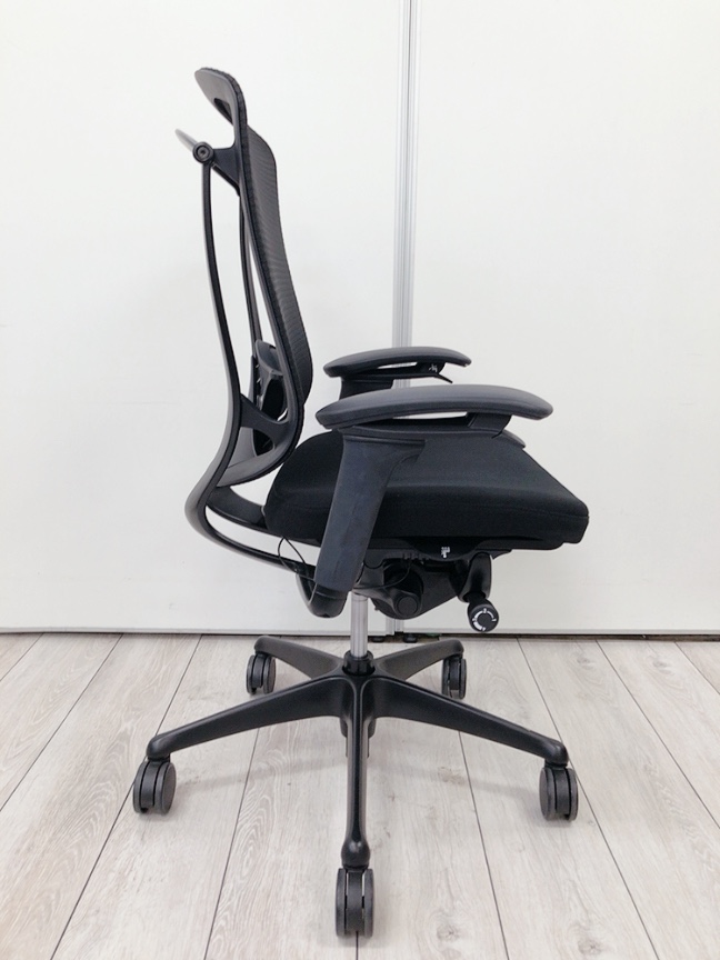 【2021年製】【世界で認められた革新的タスクチェア!人間工学に基づいた快適な座り心地を実現!】/オススメ(おすすめ) /人気商品【弊社使用欄:A01047381】■オカムラ(okamura)製 コンテッサ セコンダ ハイバック肘付き 可動肘 背/座面メッシュ ランバー付き ヘッドレスト付き ブラック