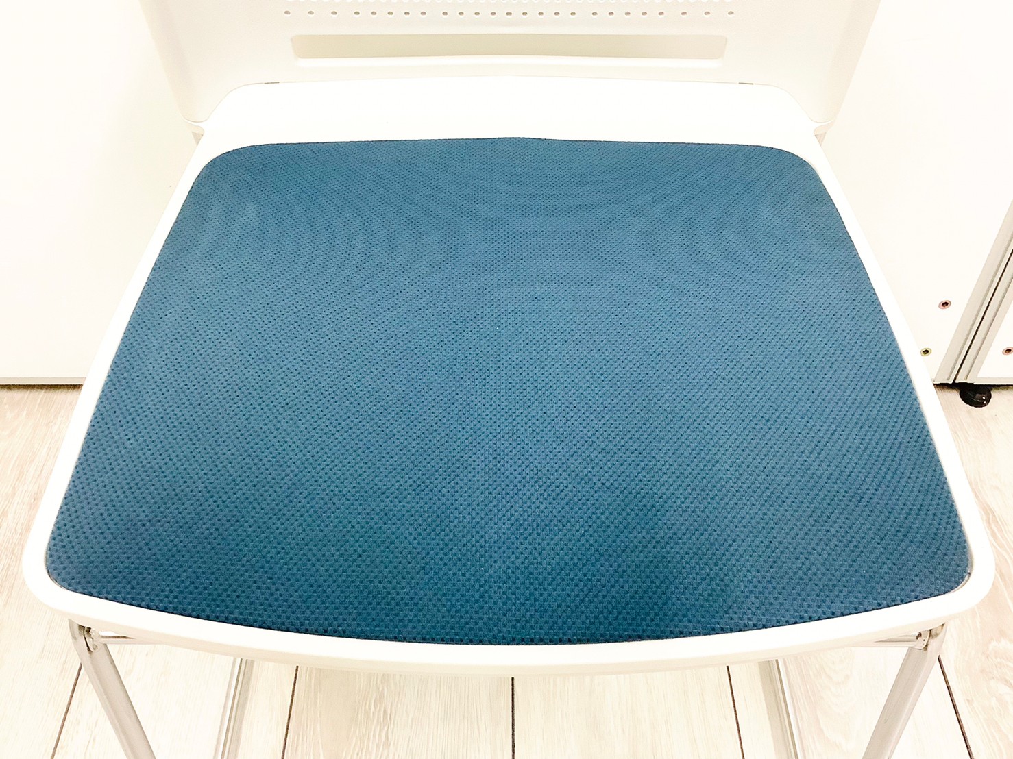 【12脚入荷】休憩室・ミーティングスペース向け!ホワイト&ブラーカラースタッキングチェア◆オカムラ製【RP】- 埼玉本店