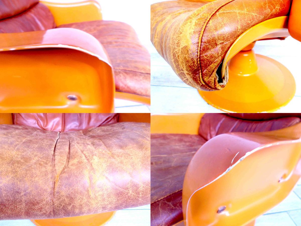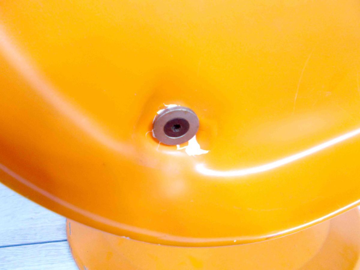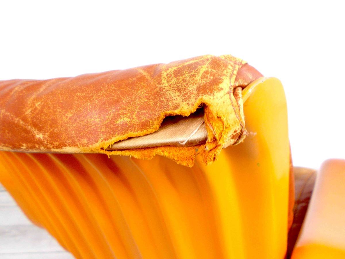 - かなり強い濃い黄ばみ・変色が商品全体にある。(例、座面・背もたれ、脚部等にある。)