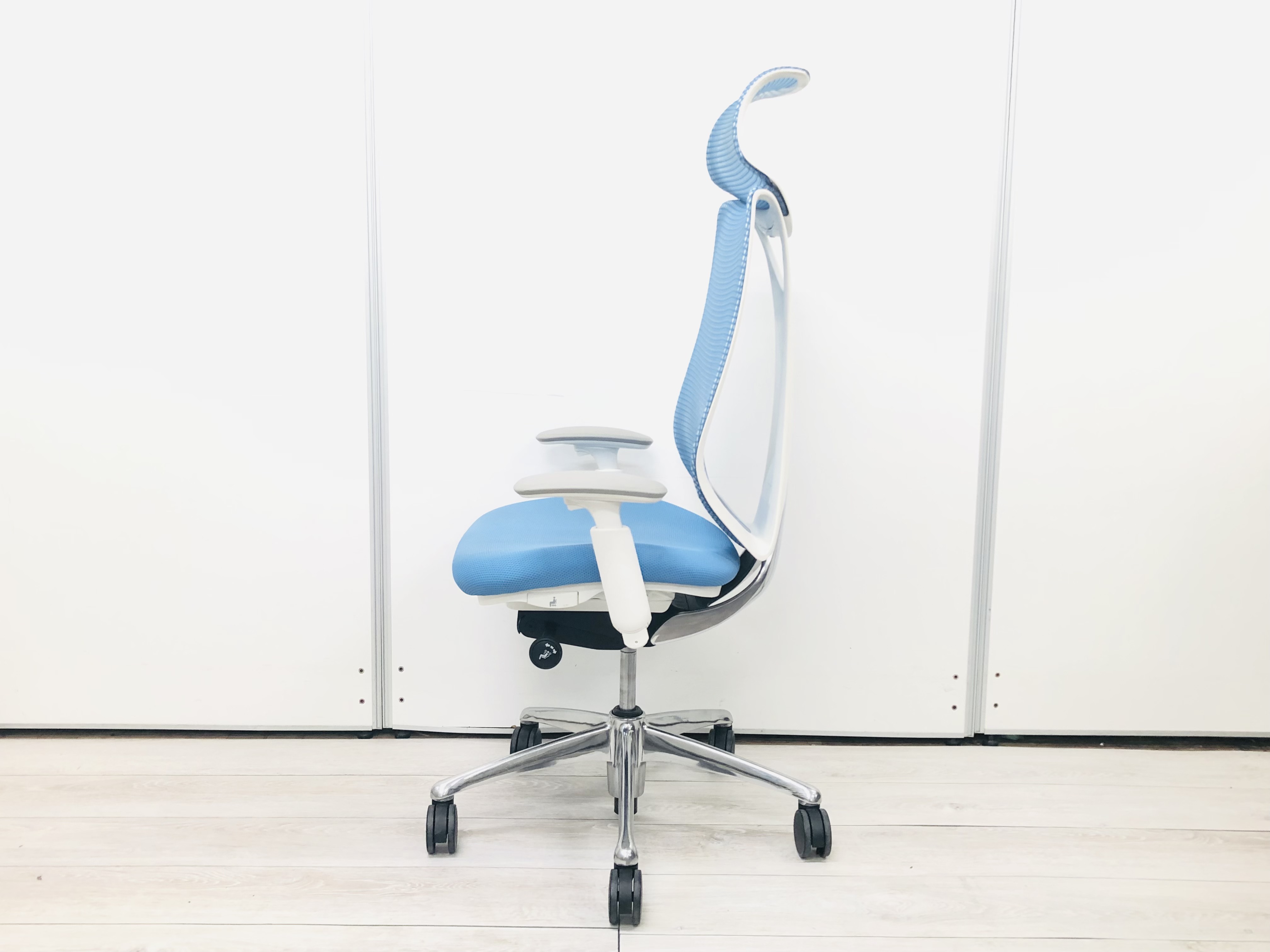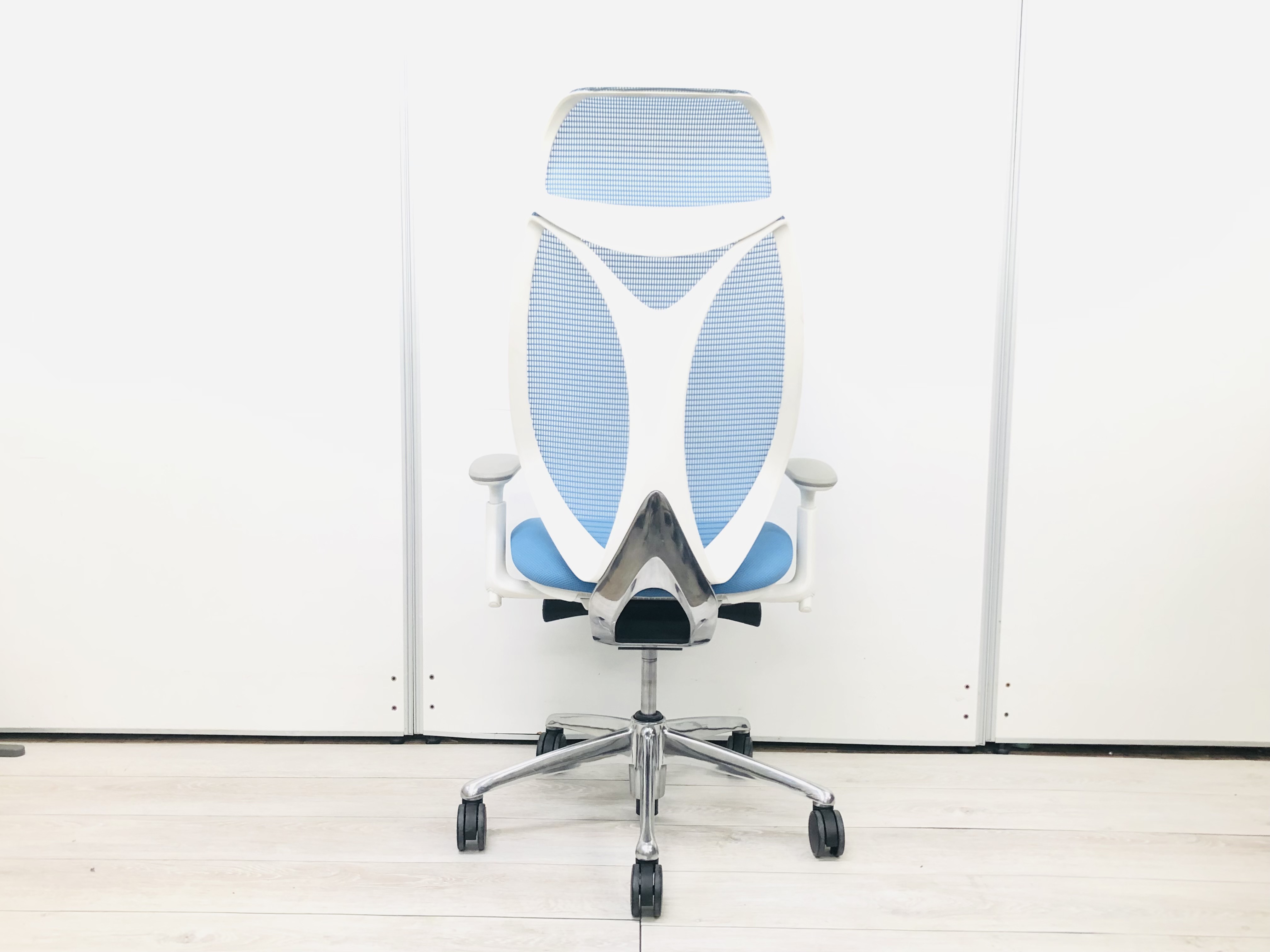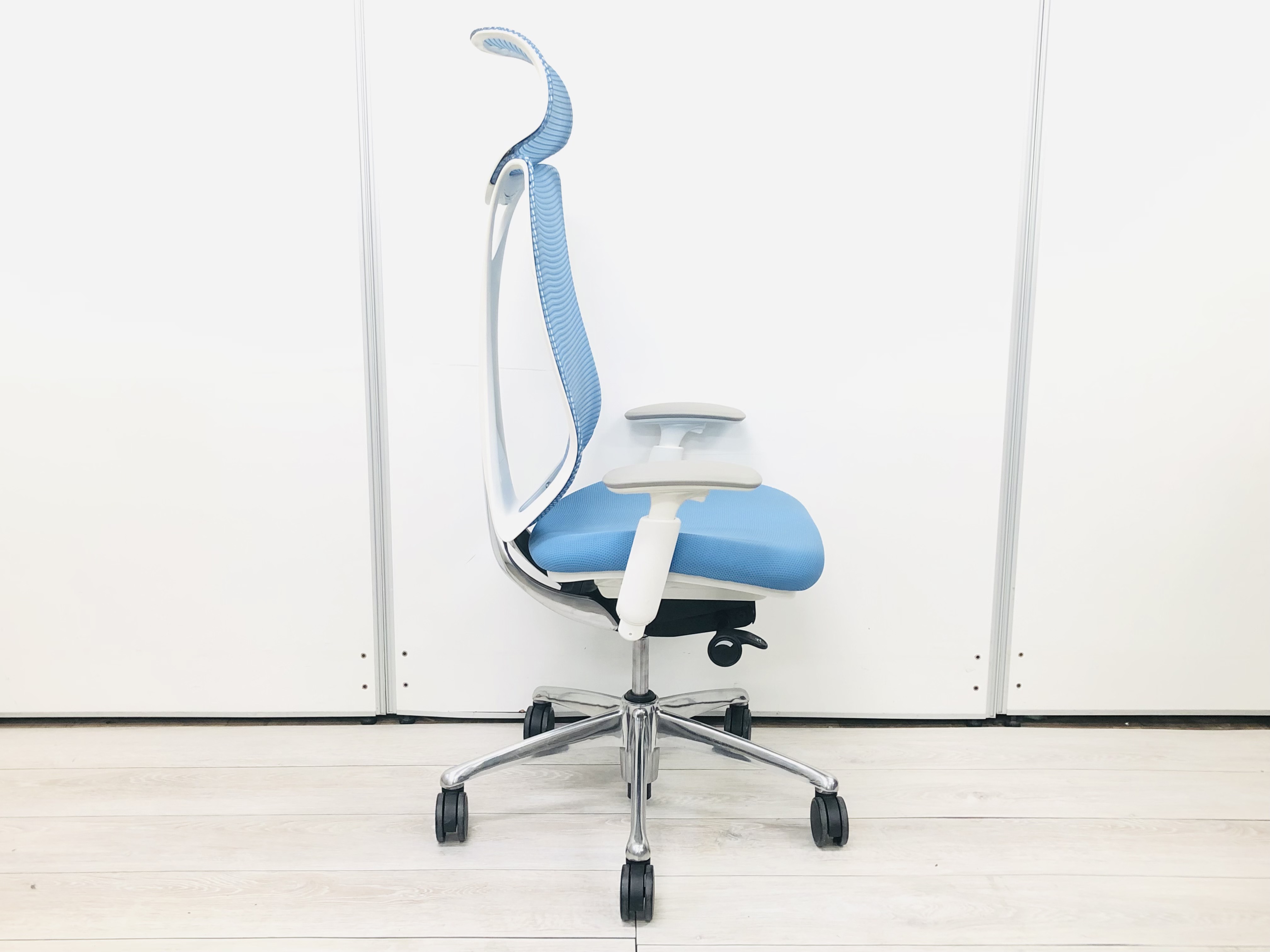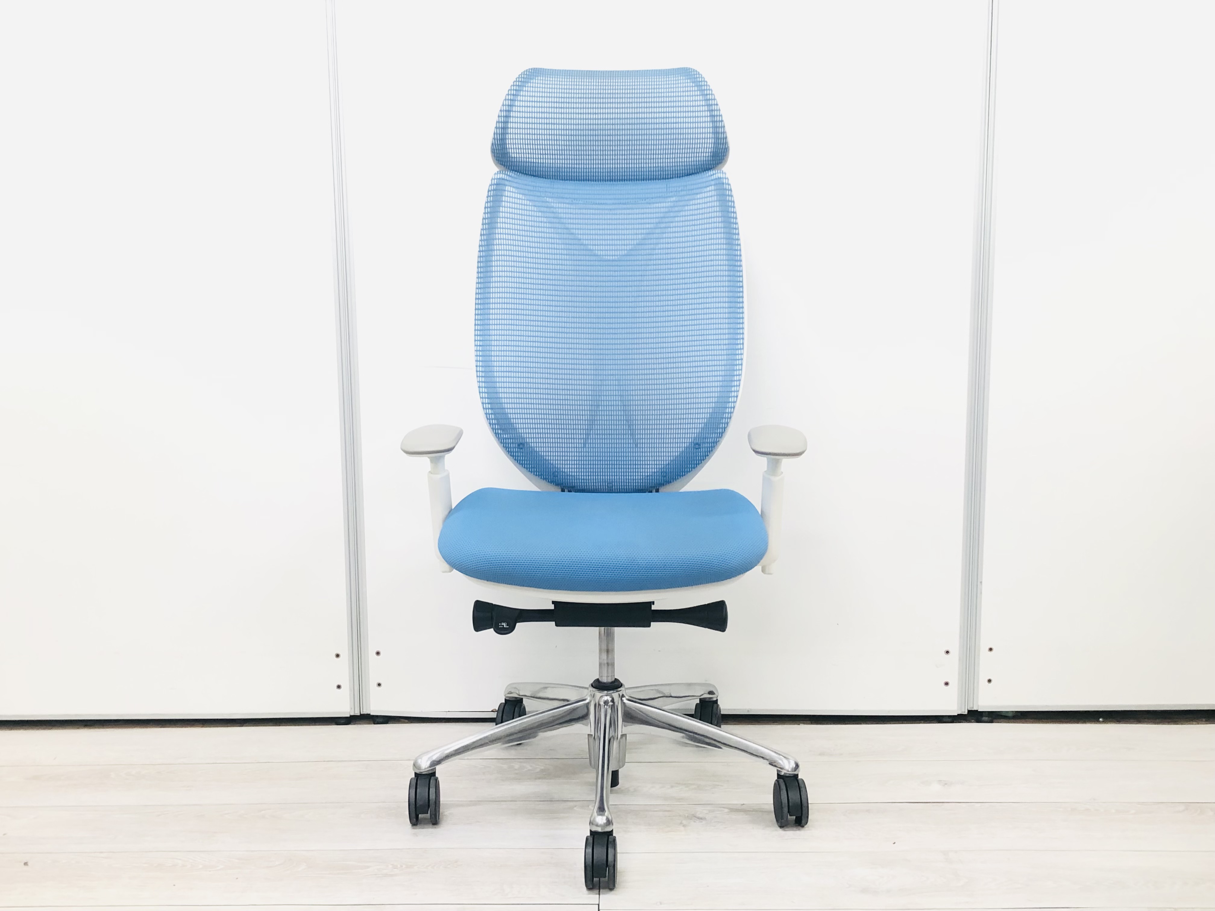 【在庫セール品】【定価約16万円】【前傾チルト付!流れるような美しいフォルムの最高級メッシュチェア!】■オカムラ(okamura)製 Sabrina(サブリナ) ハイバック 肘付き ■可動肘 ■背面メッシュ:アクアブルー/座面:ブルー×ホワイトフレーム【AD】