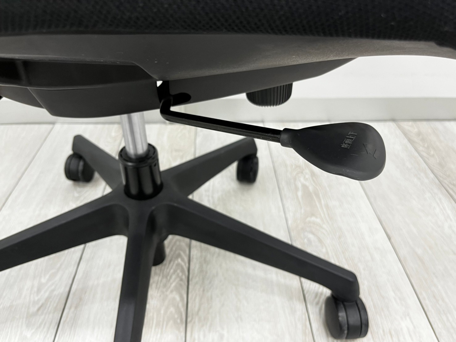なので、「どれでも同じでしょう」と過小評価されがちですが、さすがのオカムラ製!座面の無段階上下調整やリクライニングの反発の強さ調整などに加え、リクライニンする際に足首の位置を支点にして動く、アンクルチルトリクライニングという特殊な機構が搭載されています。「人間が寄りかかる動き」にぴったりとフィットし、快適さをもたらしてくれます。