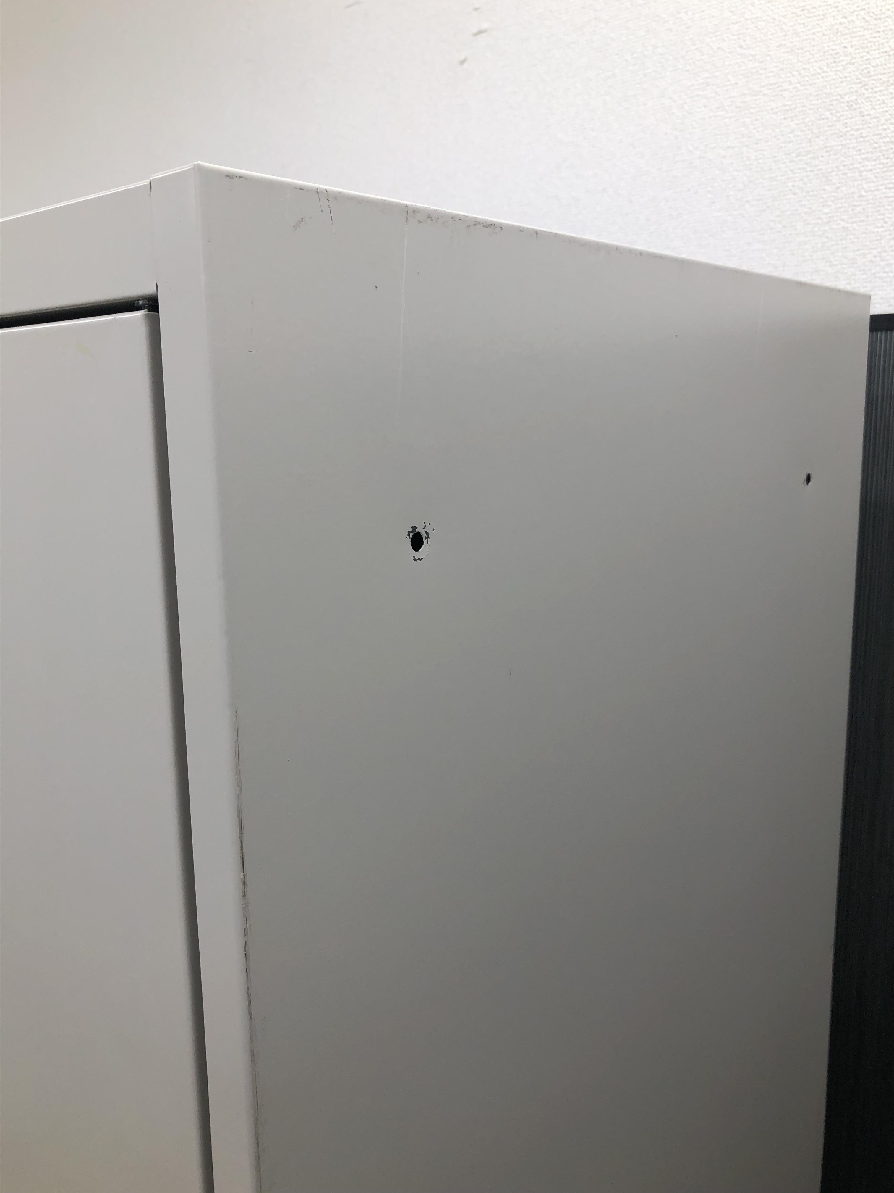 - 目立つ箇所複数あり深い傷・凹みが商品全体にある。(例、天板、正面、背部、サイド部分にある。)