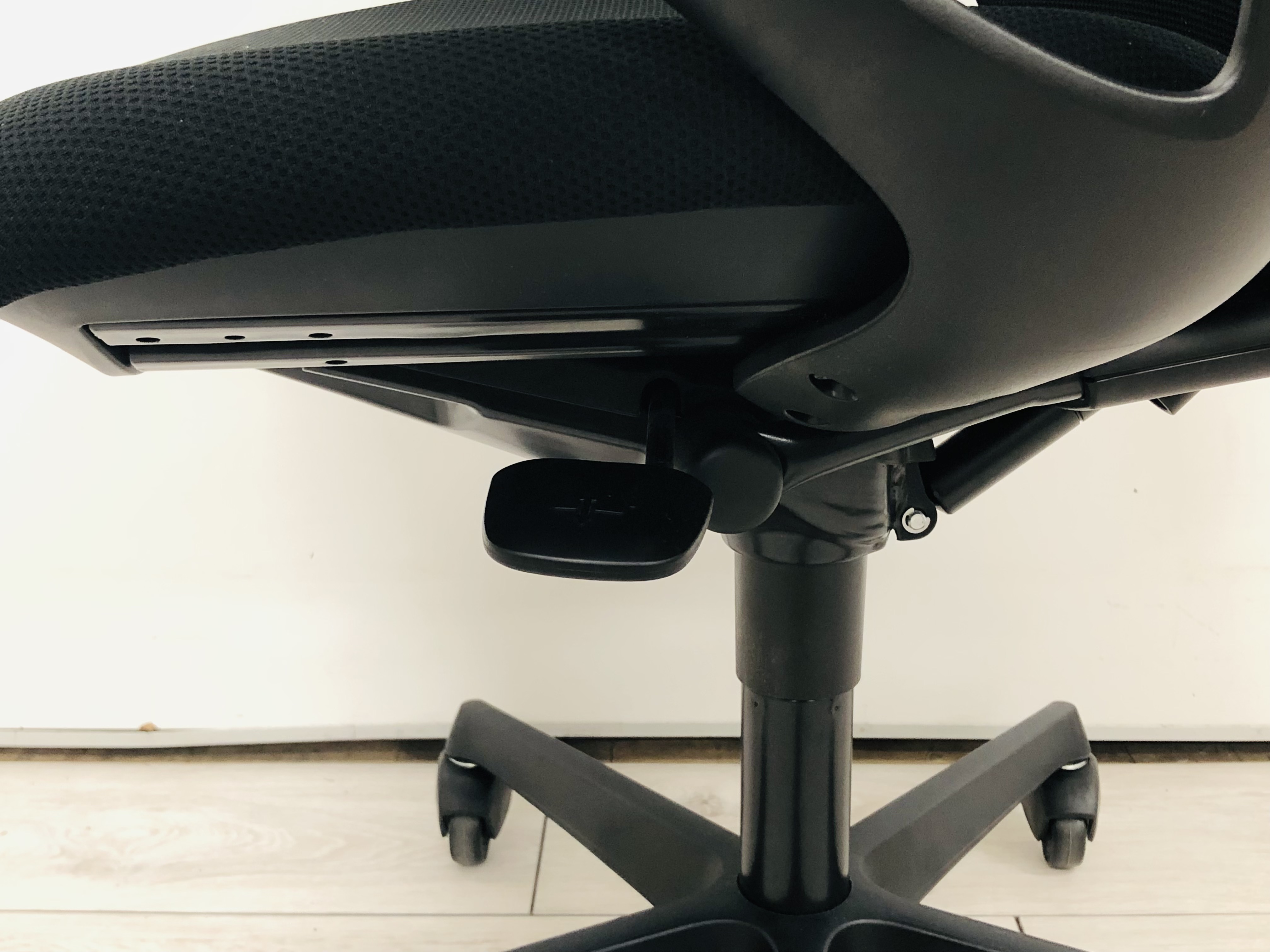 - 座面の高さは、上下ストローク最大92mmで無段階調節可能。フィットする高さに調整できます。