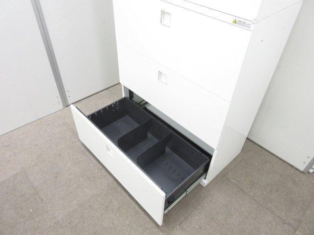 スライド式の扉+引き出しタイプの便利な書庫セットが入荷!使い勝手抜群のハイキャビネットが入荷! ■オカムラ/レクトライン/ホワイト 2枚引き戸+3段ラテラルキャビネット