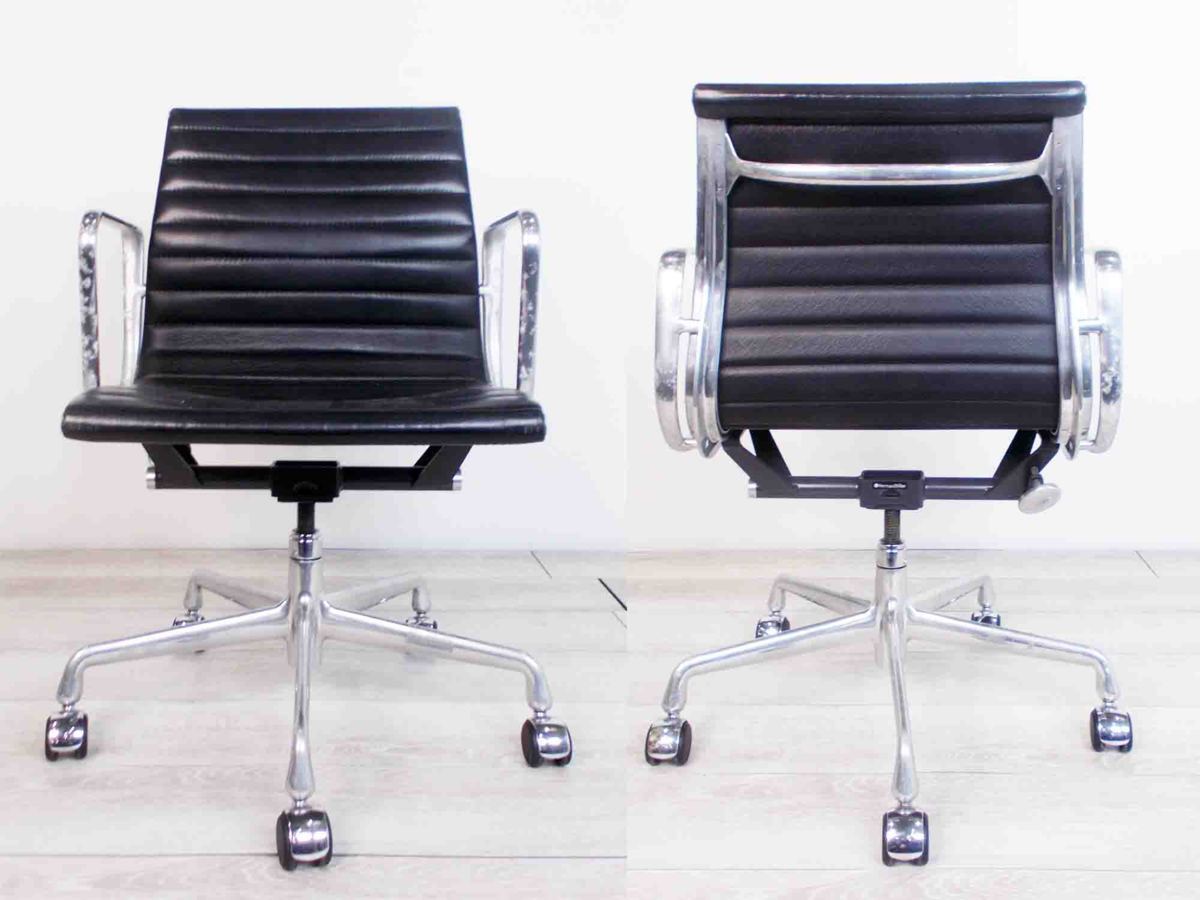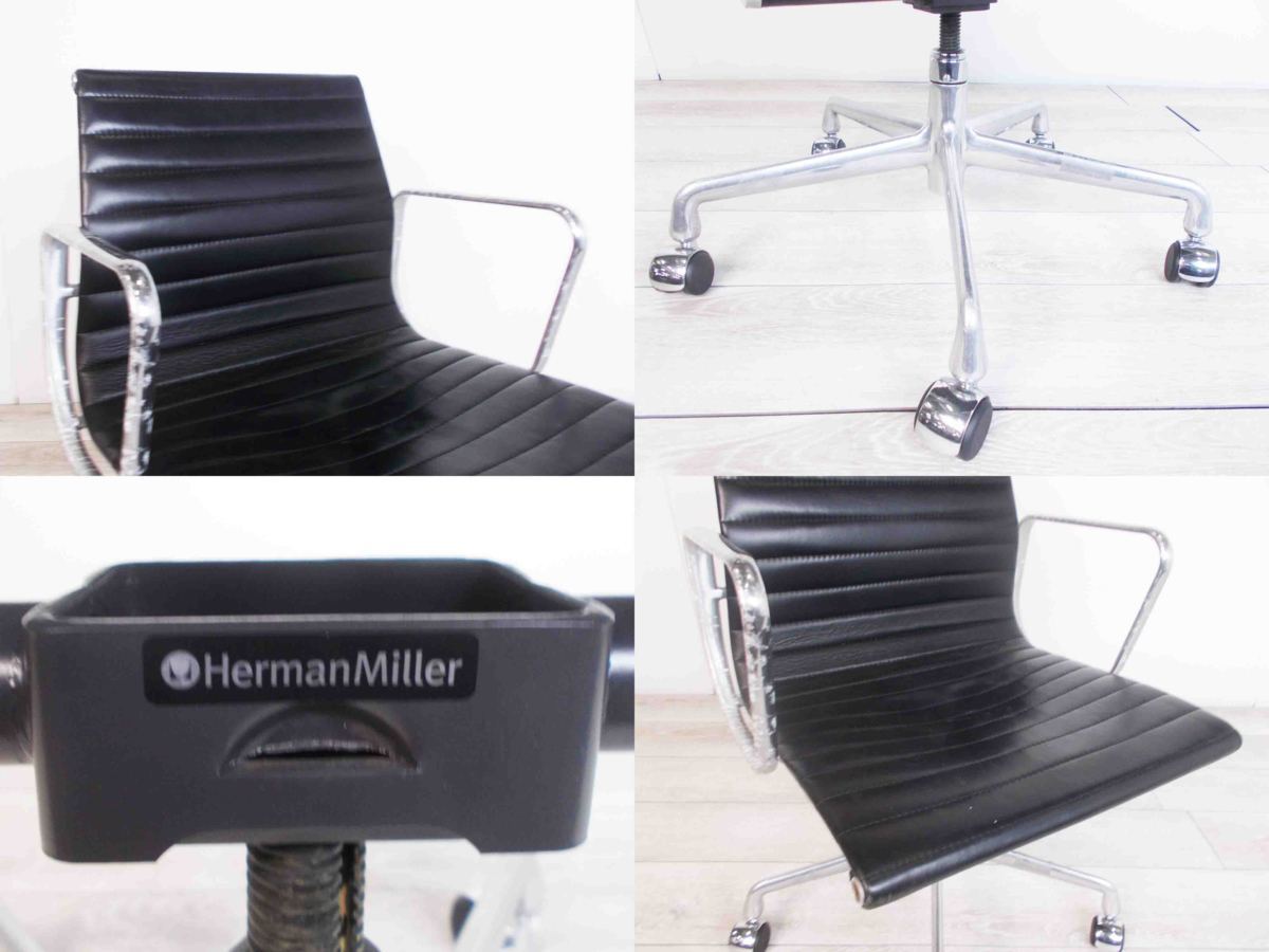 5A)HermanMiller/ハーマンミラー イームズ アルミナムチェア ローバック ブラック 本革在庫がある店舗一覧