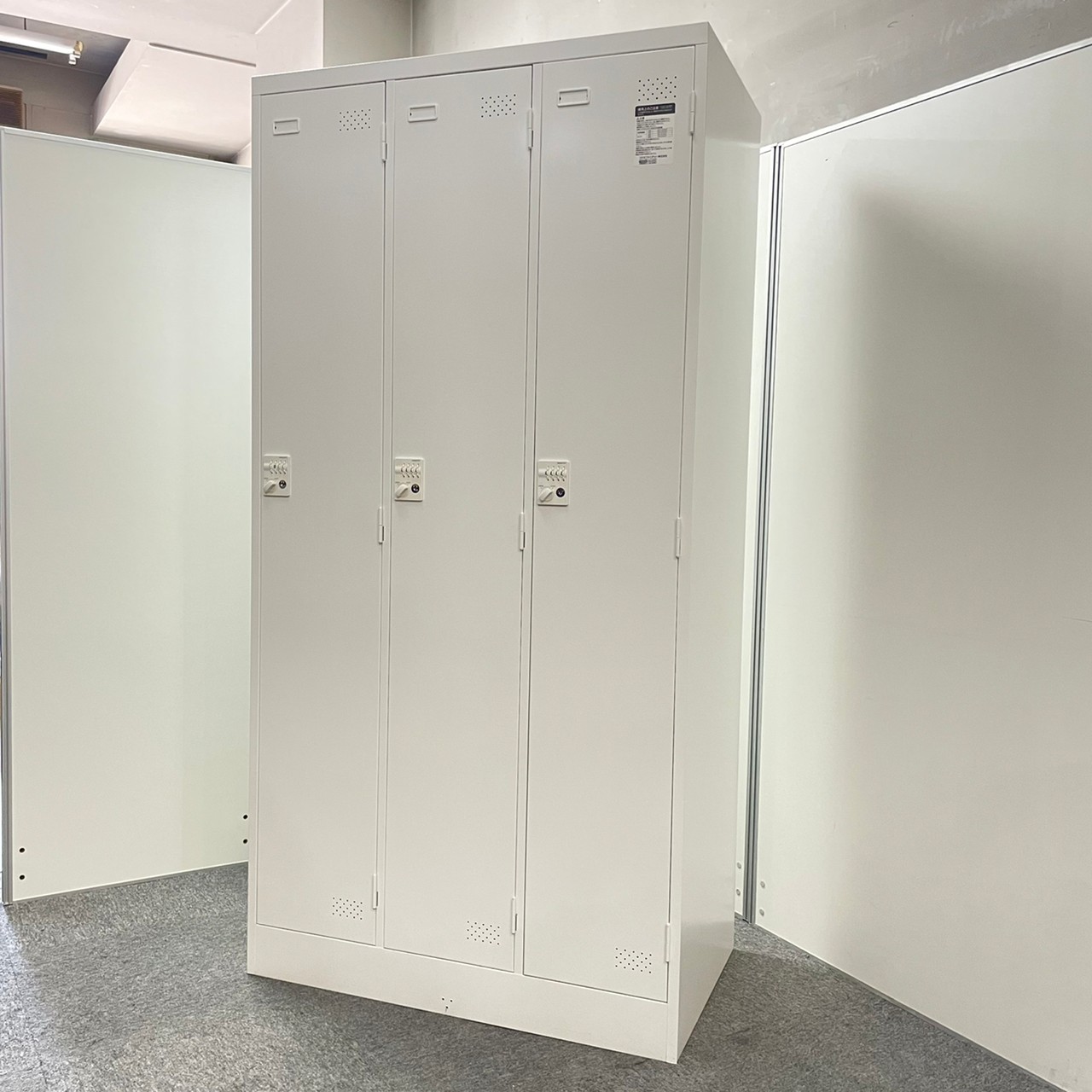 【訳あり品・現品限り・一部ダイヤル欠けあり】14年製 コクヨ製 LKシリーズ ホワイトカラー 3人用ロッカー!!※非常解除キーは付属しておりません。- 京都東寺店