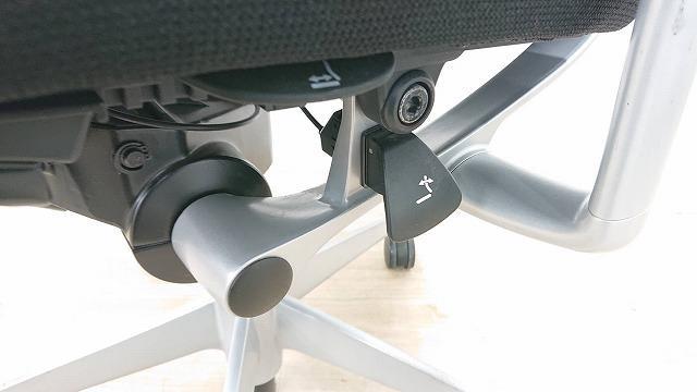 - 座面の右下にあるレバーの操作により座面位置を上下に100mm分調整することが可能です。