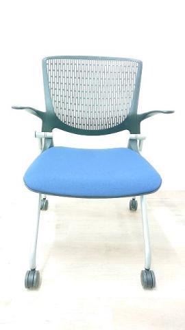 小肘付ネスティングチェア/背面クッション付き/ネイビー/オカムラ製/福岡/天神/博多/中古/安い