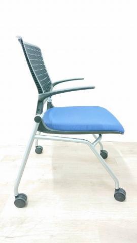 【しなやかにワーカーを受け止める洗練されたデザイン!使わない時はネスティング収納!】■オカムラ(okamura)製 グラータ(Grata) ミーティングチェア ネスティング ■背面樹脂メッシュ ■ブルー