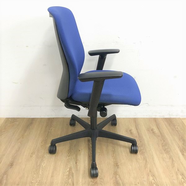 アジャストアーム搭載 オカムラ スラート 最先端のスタンダードモデル ハイバック ミディアムブルー- 名古屋千種店