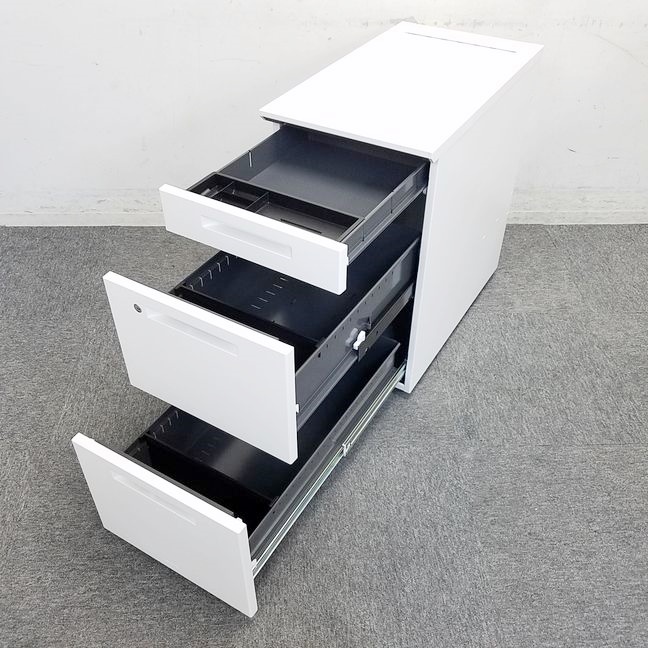 【収納量アップでデスクワークが充実!書類や備品の管理にオススメ!】■コクヨ(KOKUYO)製 アイエス(iS)シリーズ 3段脇机 W400×D700㎜ ■ホワイト ■シリンダー錠