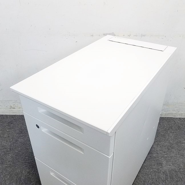 【収納と作業スペースを同時に確保!フリアドデスクや平机のお供に!】■コクヨ(KOKUYO)製 アイエス(iS)シリーズ 3段脇机 ■W400×D700×H720㎜ ■配線口 ■ホワイト ■シリンダー錠