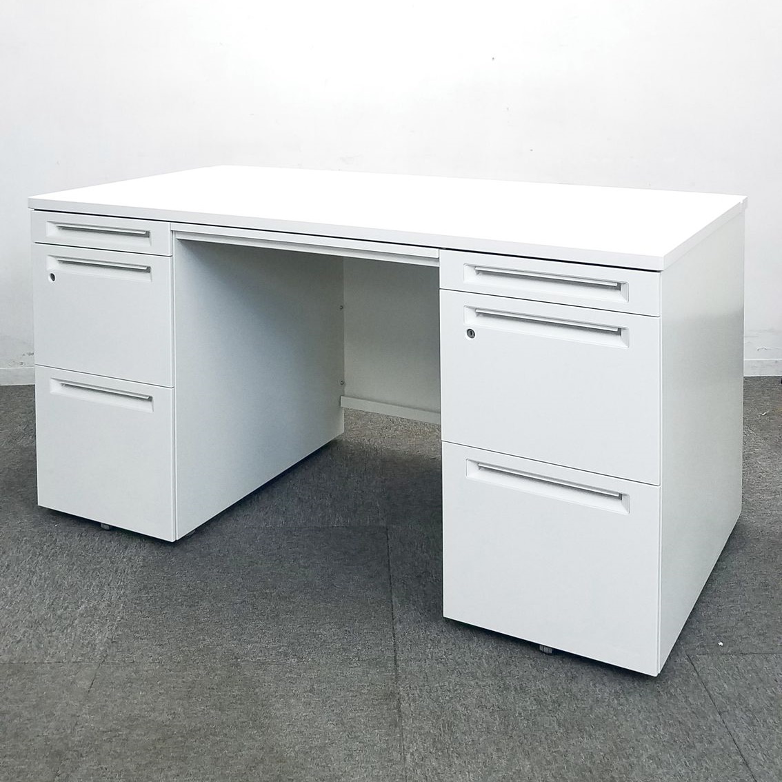 定番/大人気/希少 オカムラ(okamura)製 アドバンス 両袖机 幅1400㎜ ■ホワイト ■シリンダー錠