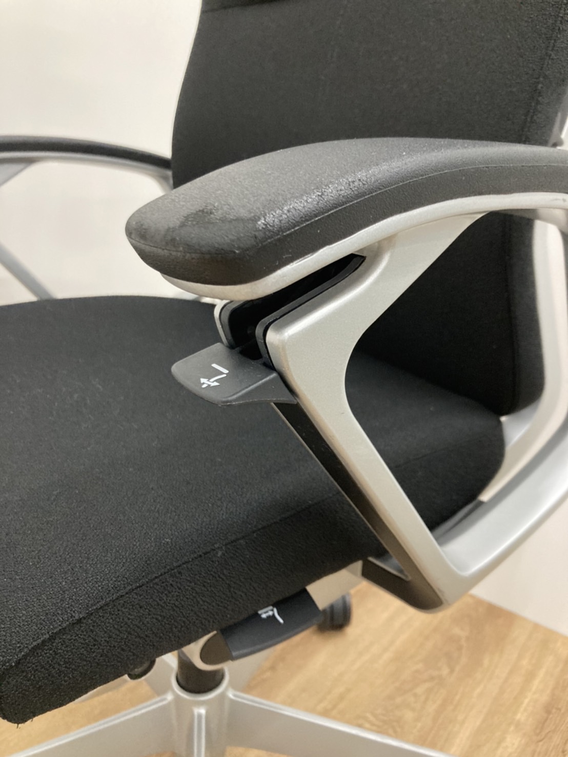 ※ひじ掛け部分に使用感ありのため、特価!【オカムラの最上級モデル!高級感と機能性を融合させたチェア!】■ハイバック 肘付き 背・座クロス張地(スエード調) 固定肘 ※サイド剥がれ有り ランバーサポート付き ブラック/オカムラ/デューク