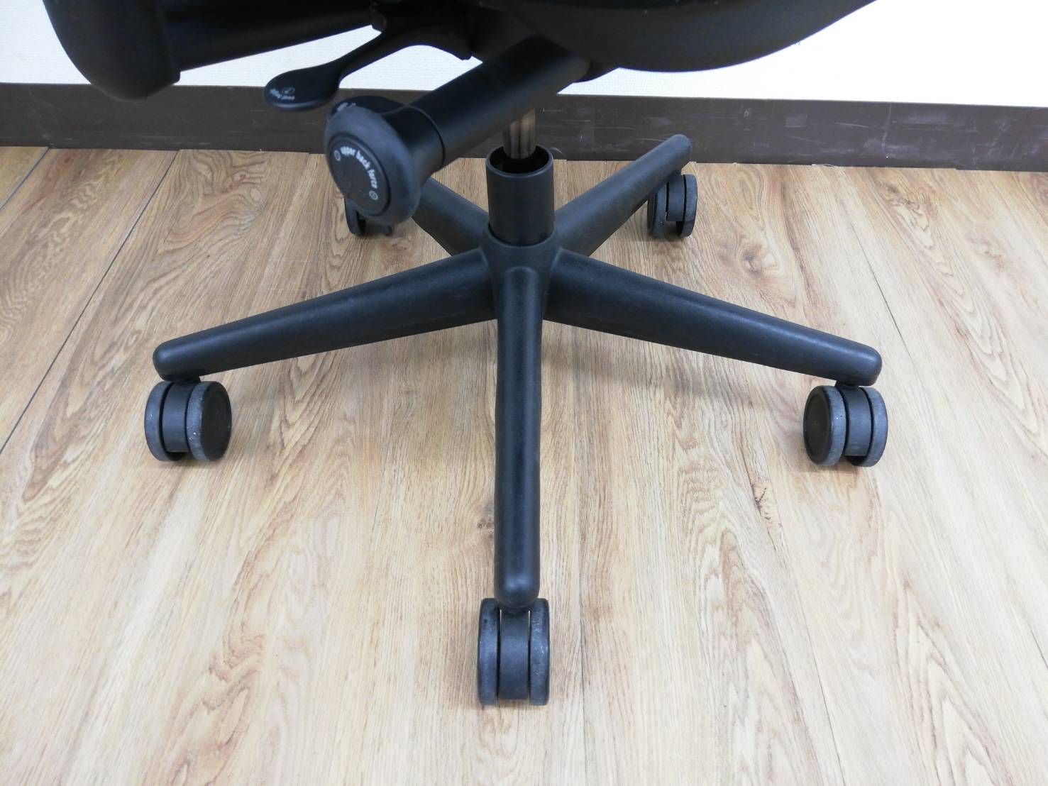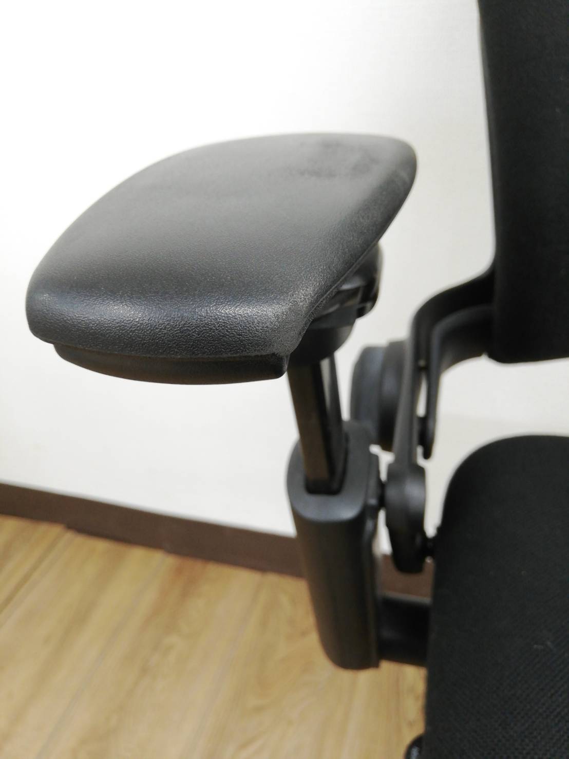 キズ:脚部やフレームの樹脂に剝れ・キズ多め、肘掛け可動若干緩めです