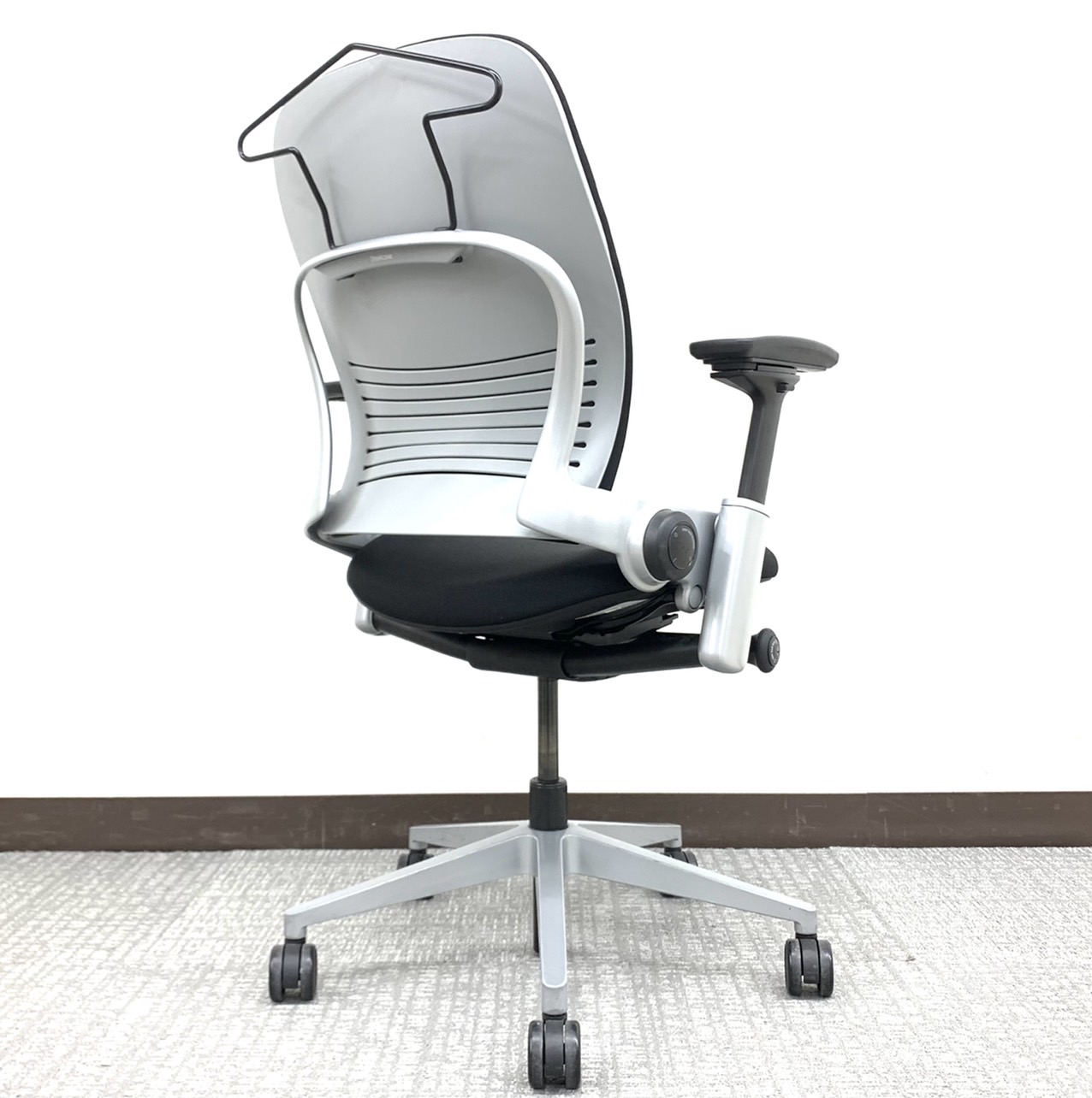 【2016年製Aランク】リープ(Leap)チェアV2シルバーフレーム蓮田初入店!※背もたれクッション仕様&ハンガー付ランバーサポート無し◆スチールケース(SteelCase)製【RP】- 埼玉本店