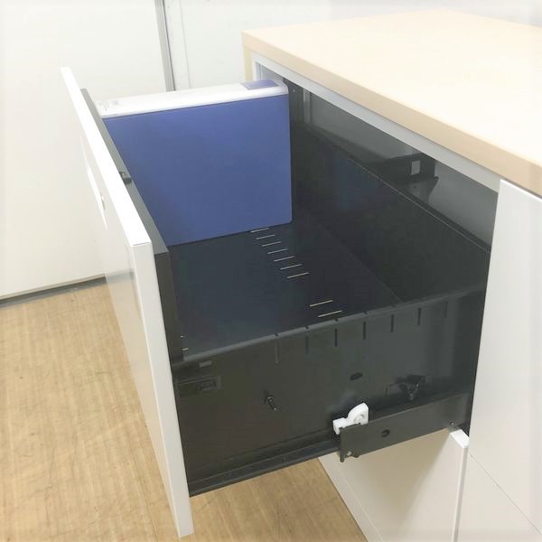 フリーアドレスデスクのデスクサイドに設置向けにサイズ設計されたラテラル2段