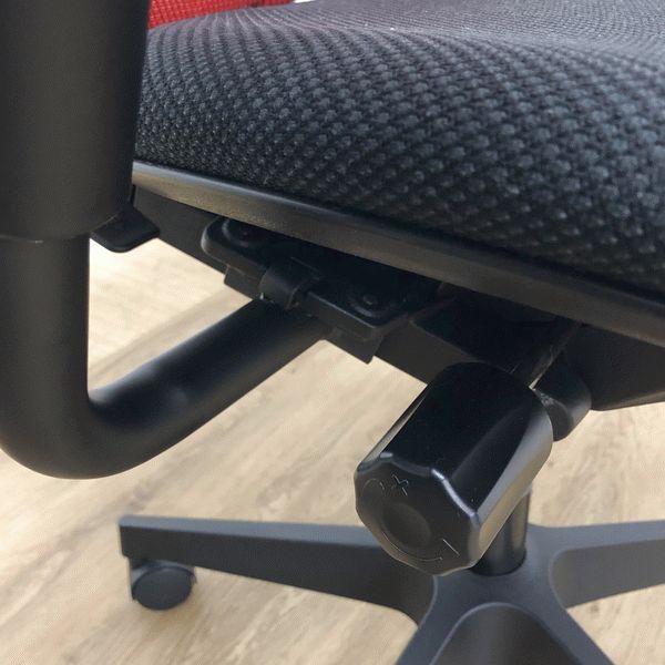 例えば、座面は、イトーキ独自の"ベンディングシート"という機構により、クッション、インターシェル、空洞という三層構造になっています。 この真ん中に挟まっているインナーシェルが、着座時の姿勢に合わせて体重を分散してくれるので、どんな姿勢でも体になじみ、疲労を軽減してくれます。 さらに、座面は前後に4センチほど奥行きを調整でき、前傾姿勢で座りたい、深く腰掛けたい、膝裏を圧迫されたくないなど、個人の好みに合った快適さにカスタマイズが可能となっています。
