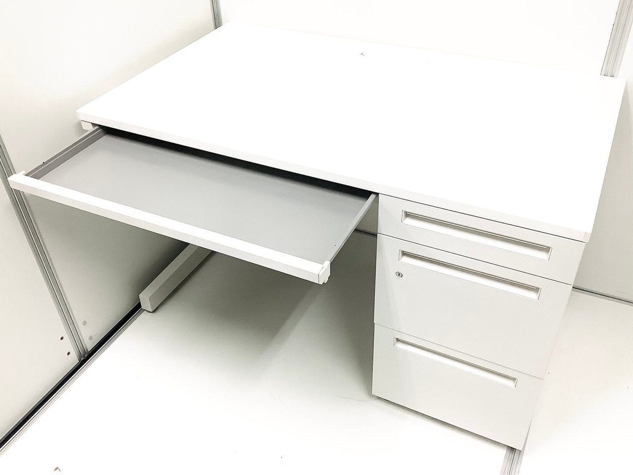 【引き出しつきデスクとワゴンの特別セット!】■内田洋行 スカエナシリーズ デスク+ワゴンセット ■横幅1200㎜×奥行き700 ■引き出しなし ■ホワイト 【中古でお得に買うなら品質の良いデスクを!】 ※ワゴンは在庫状況によって変動致します。