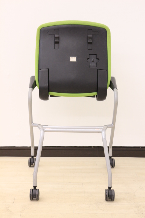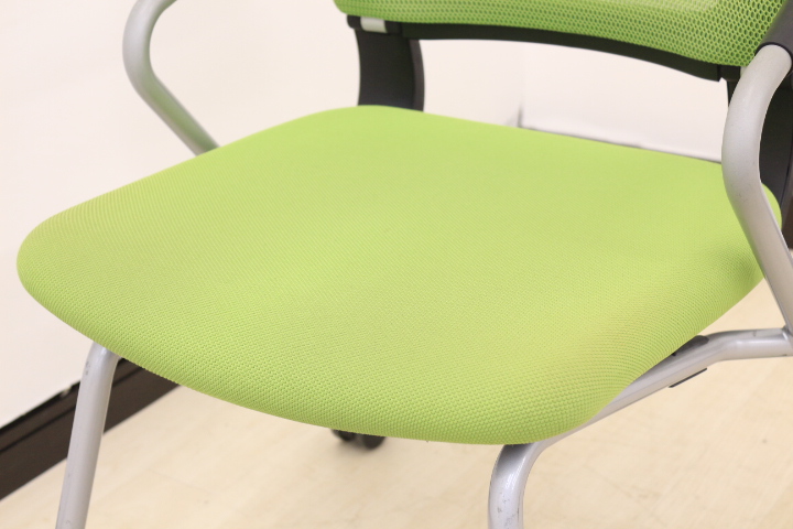 【背にフィットする快適メッシュ!】■コクヨ製 ネスティングチェア ライトグリーン ■リラックスできる肘付!厚めのクッション!- 川崎店