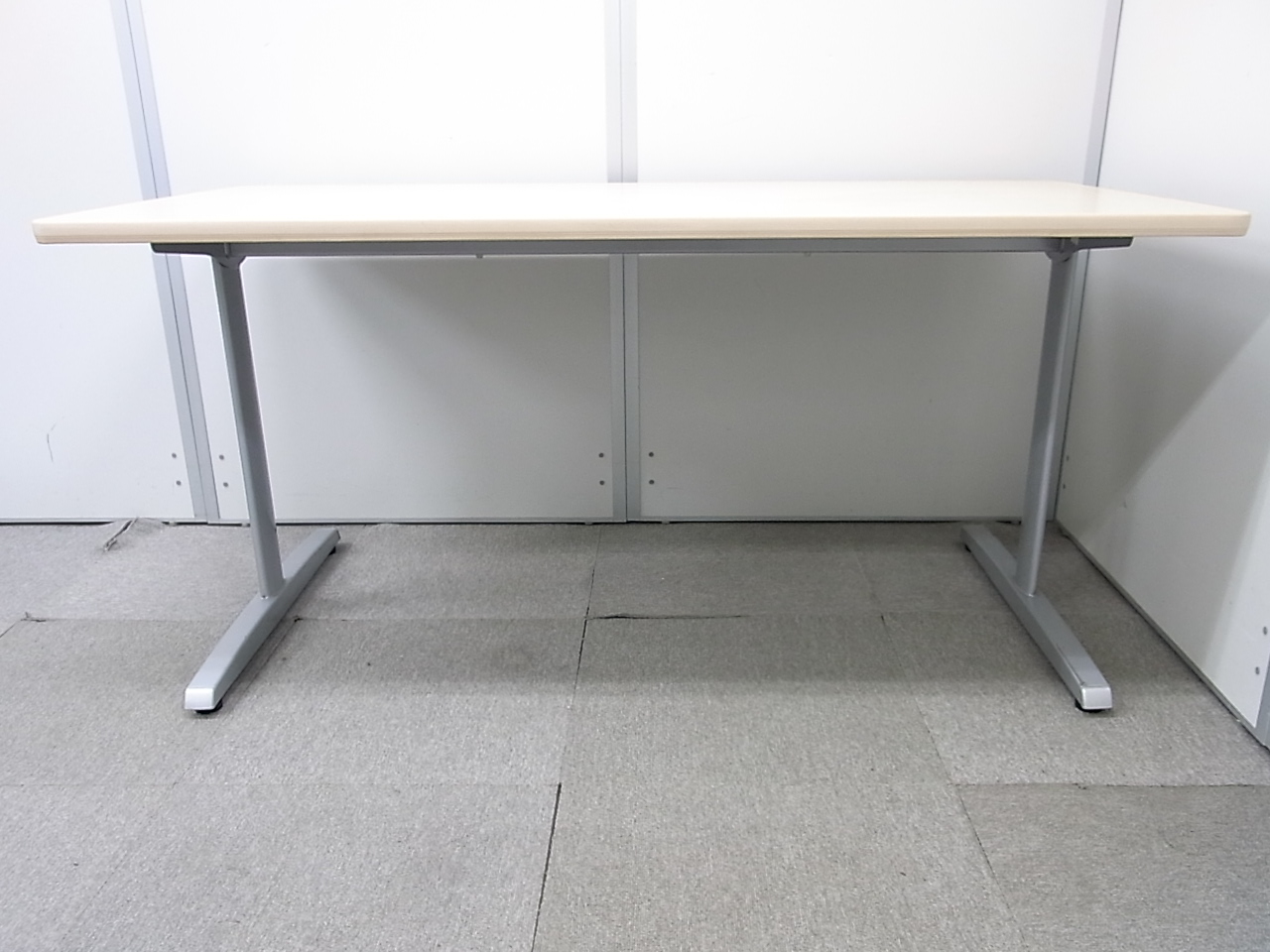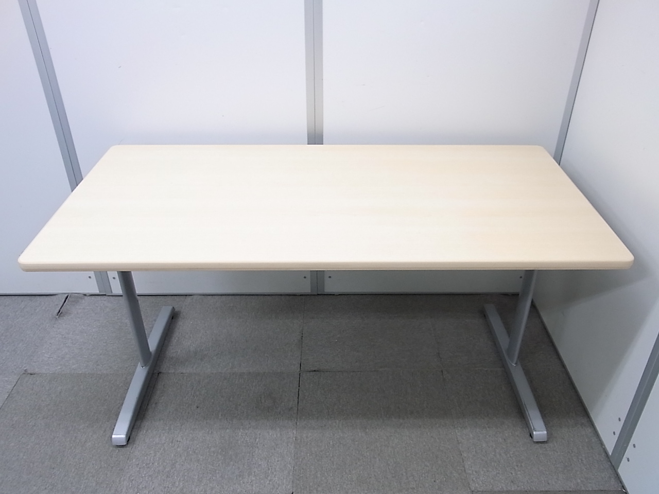人気のメーカーオカムラのテーブル幅が1500mmもあるのでランチテーブルや簡単なミーティングテーブルなどにお勧めとなっております。足がT字型なので足元にゆとりができます!デザインも人気の木目調になっているので大人気の商品です。