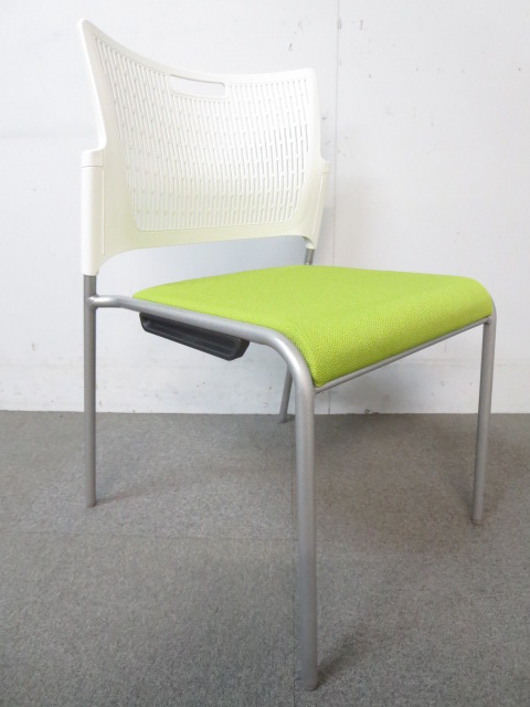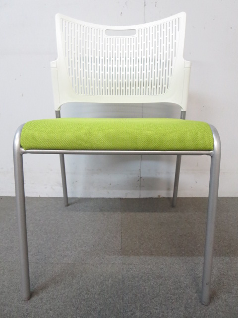 【リフレッシュ空間にもフィット!】■オカムラ製 スタッキングチェア イエローグリーン- なんば日本橋店