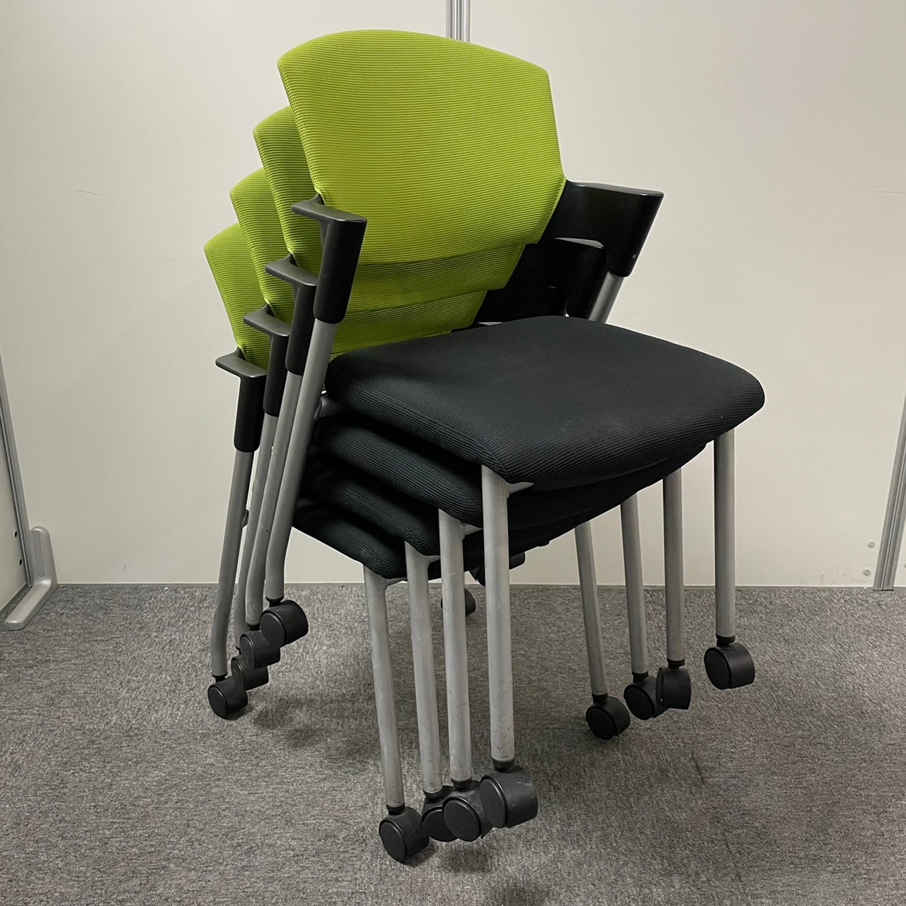 【4脚セット】コクヨ製 プロッティシリーズ ライトオリーブ スタッキングチェア!!- 京都東寺店