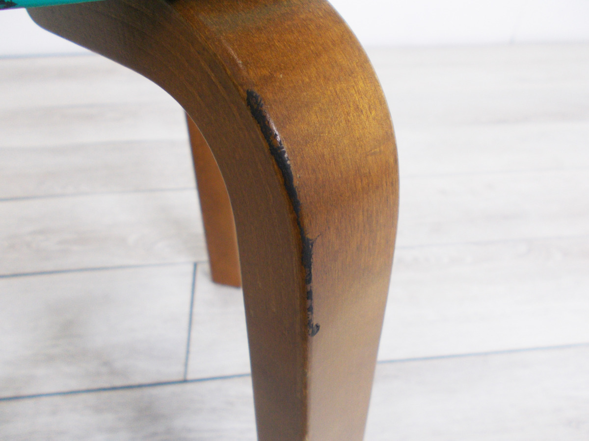 - かなり強い濃い黄ばみ・変色が商品全体にある。(例、座面・背もたれ、脚部等にある。)