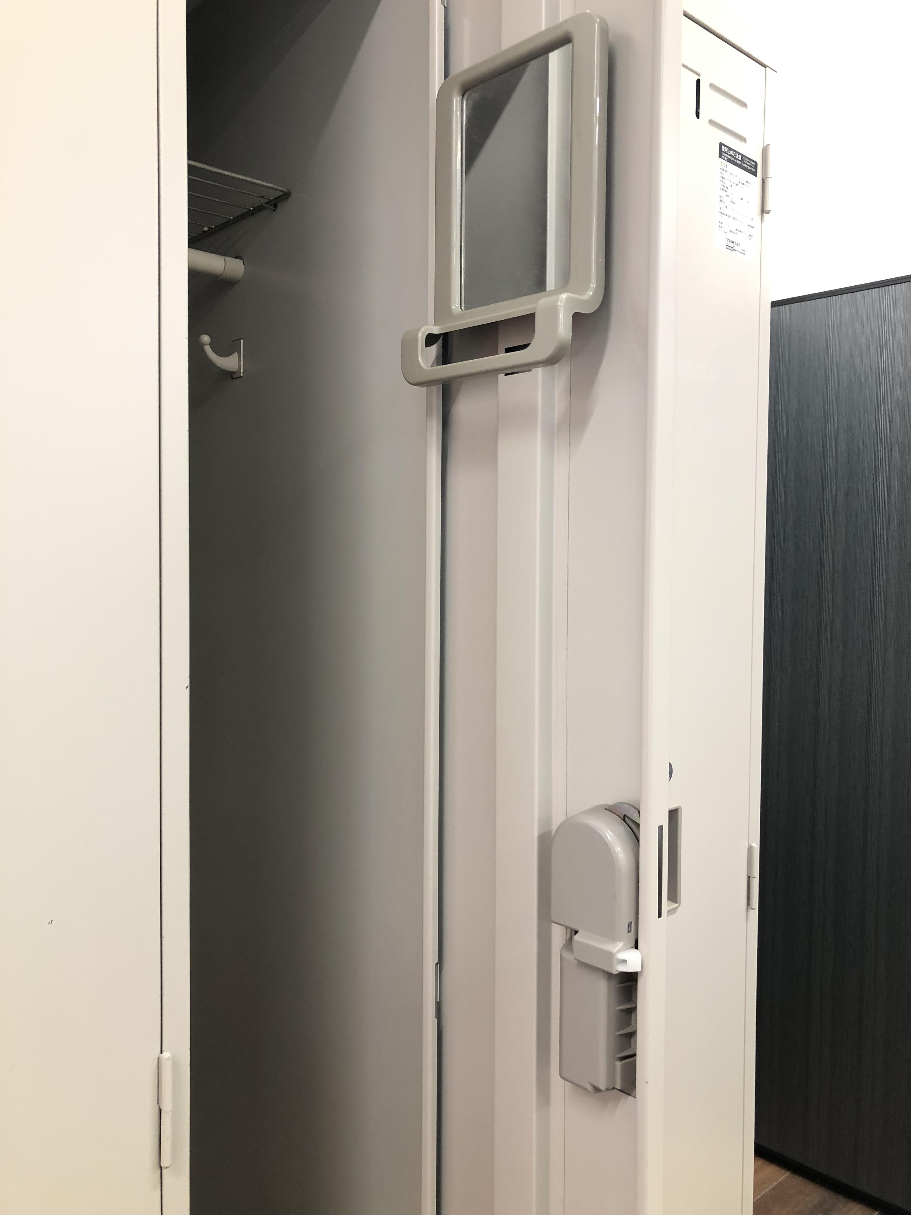 - 完備鏡、ネクタイ掛け、傘立て、網棚、フック等が全て完備されている。