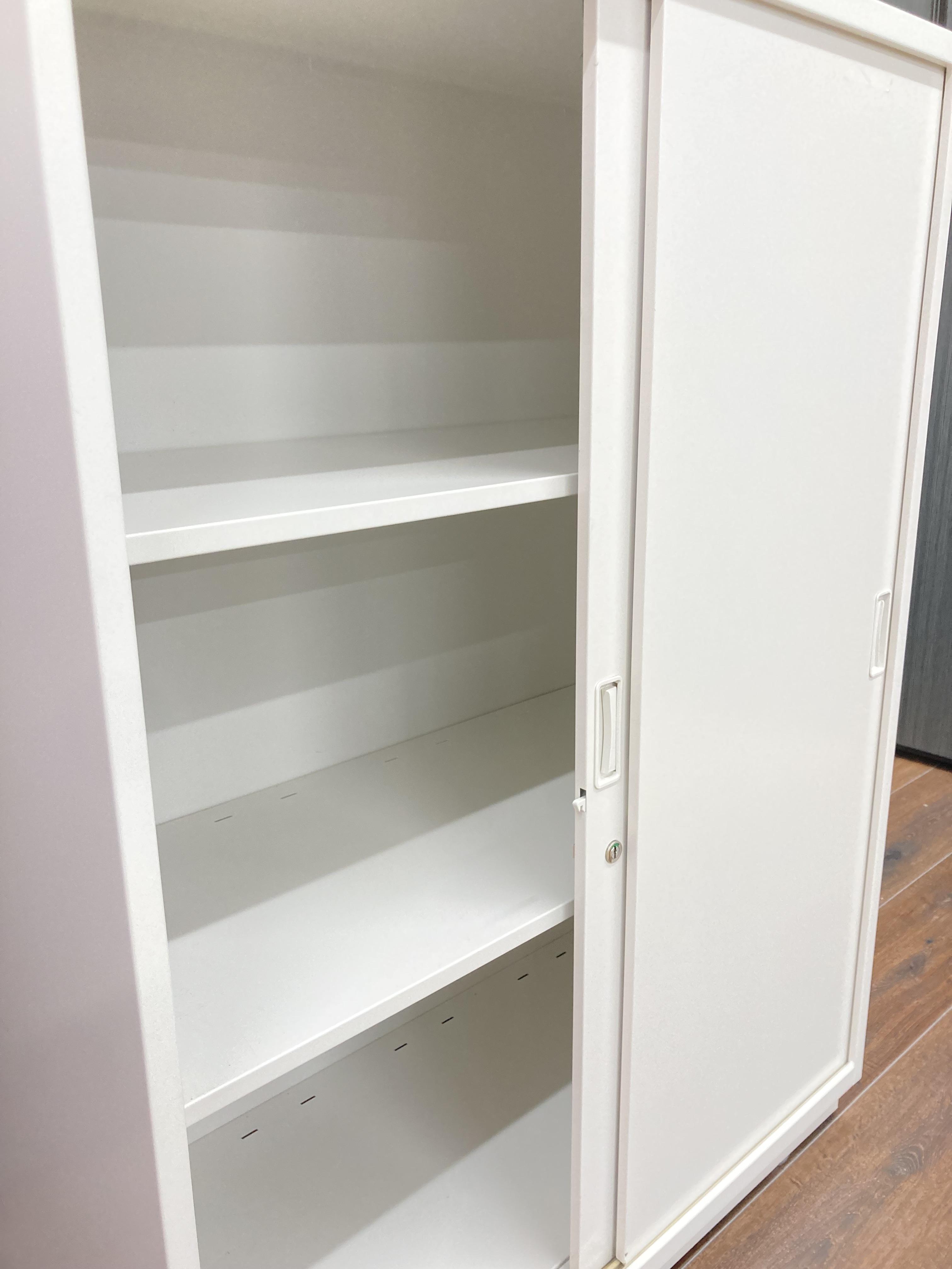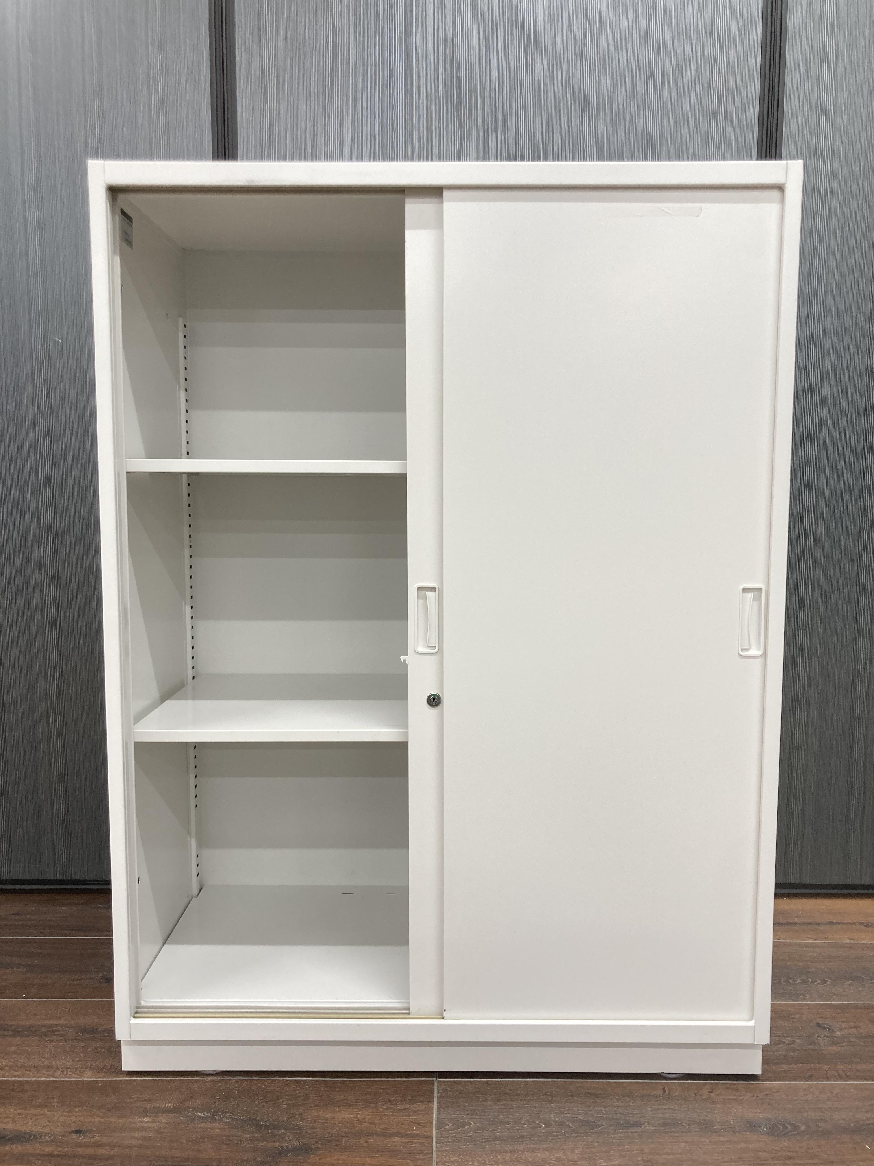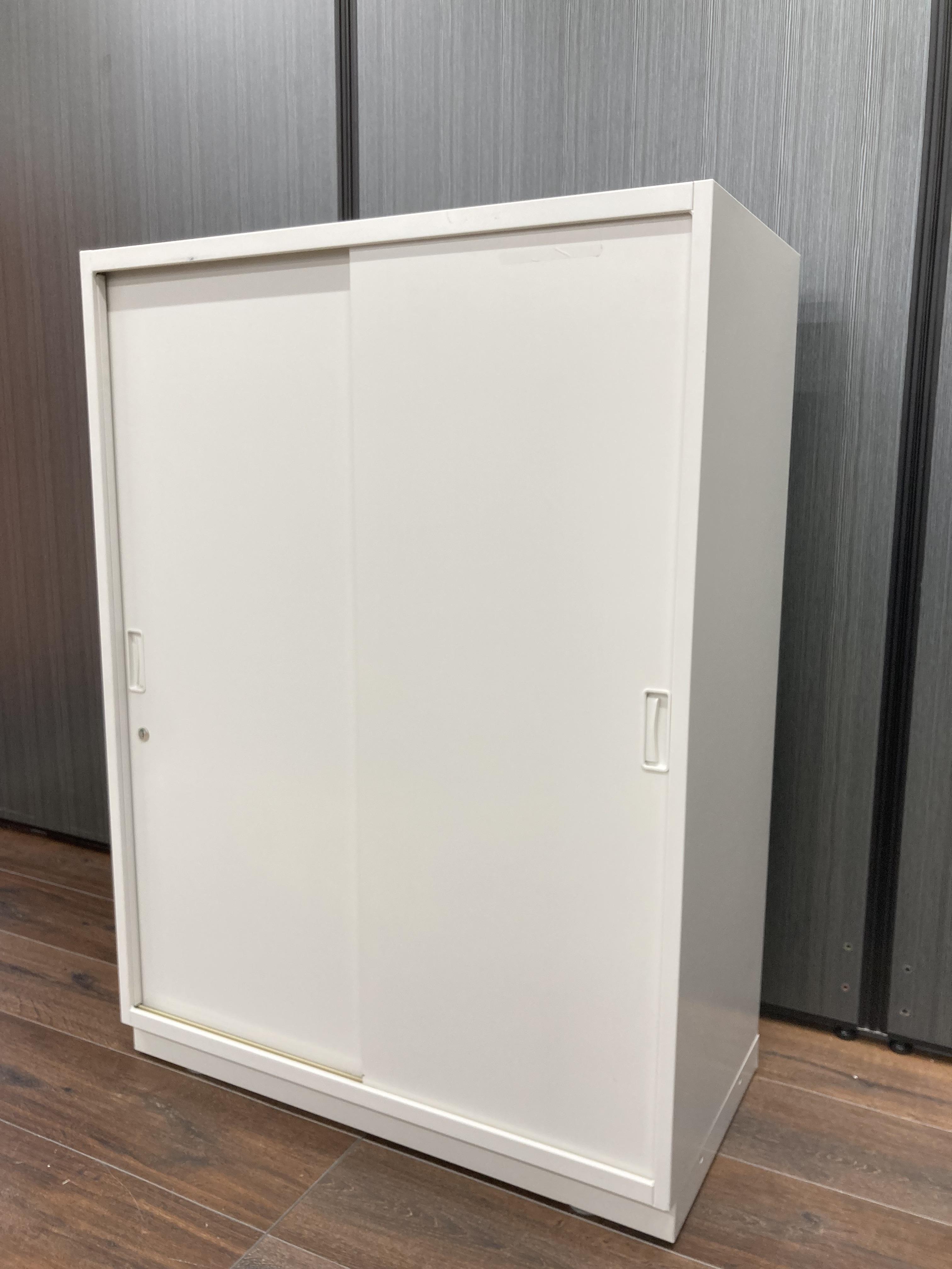 【イトーキ製の開閉スペースを確保した人気のキャビネット!】■3枚引き違いキャビネット ■イトーキ ■シンライン ■幅800mm×奥行き450mm×高さ1100mm 鍵付き書庫 オフィスバスターズ東大阪店