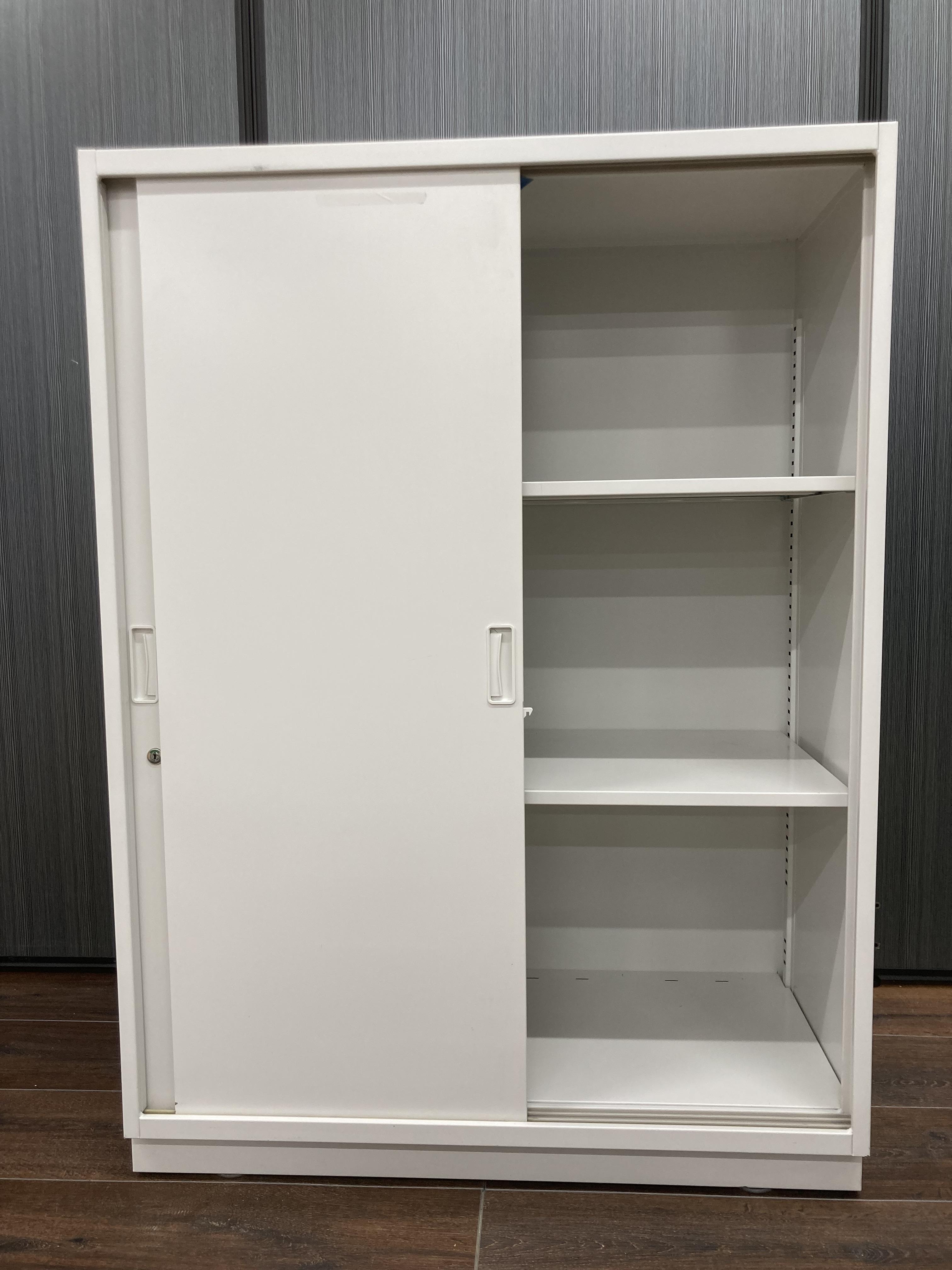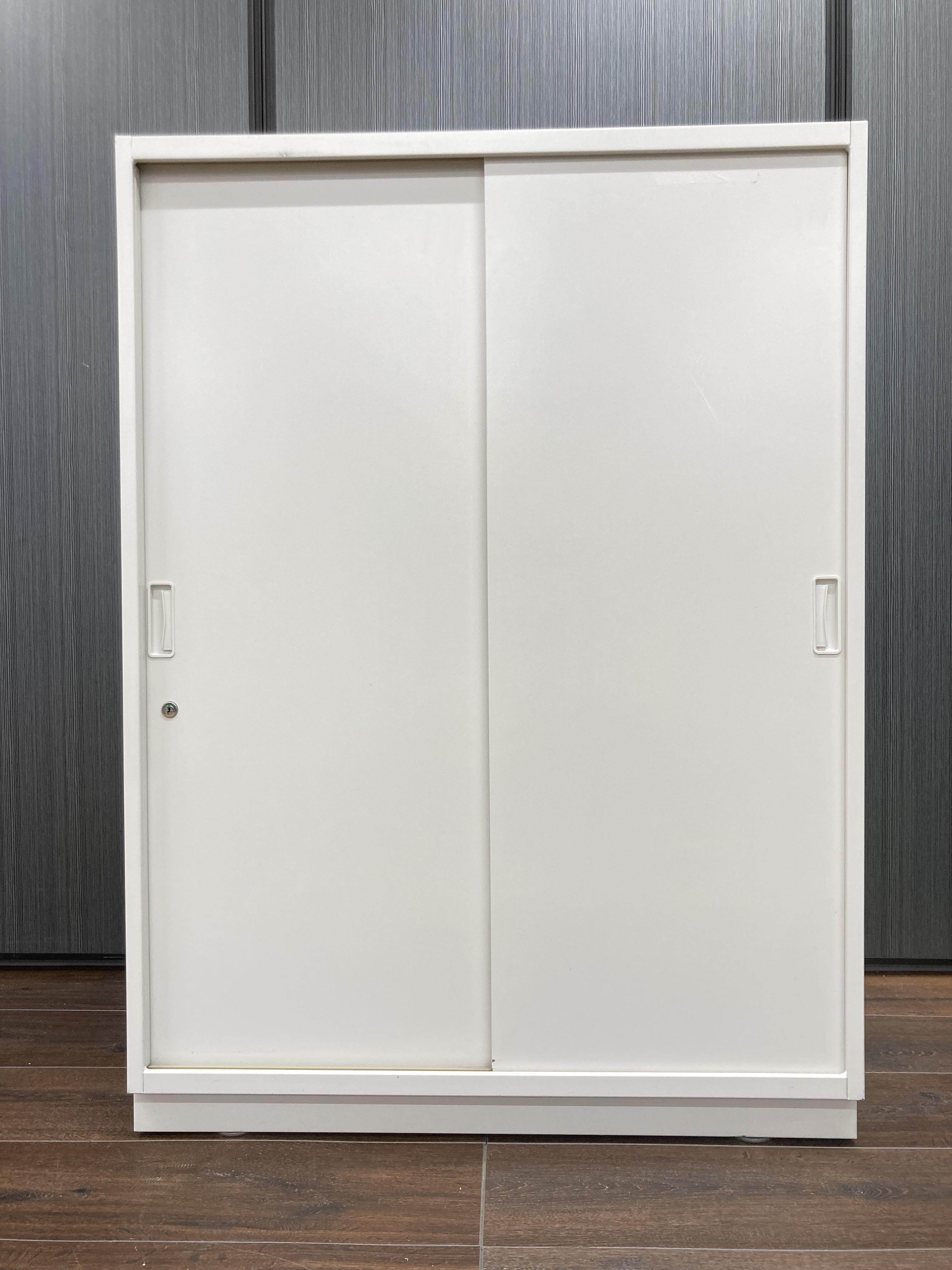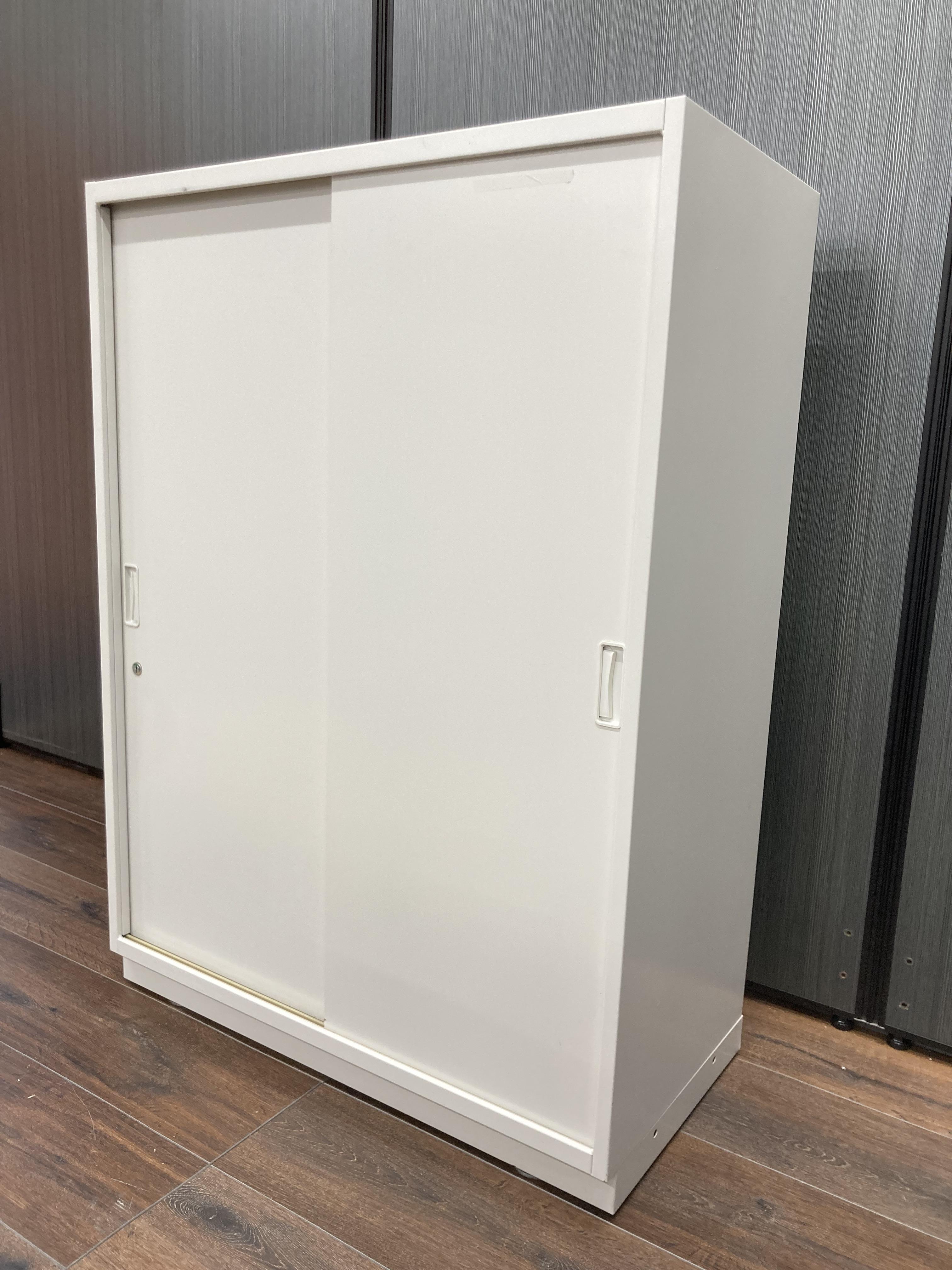 【イトーキ製の開閉スペースを確保した人気のキャビネット!】■3枚引き違いキャビネット ■イトーキ ■シンライン ■幅800mm×奥行き450mm×高さ1100mm 鍵付き書庫 オフィスバスターズ東大阪店