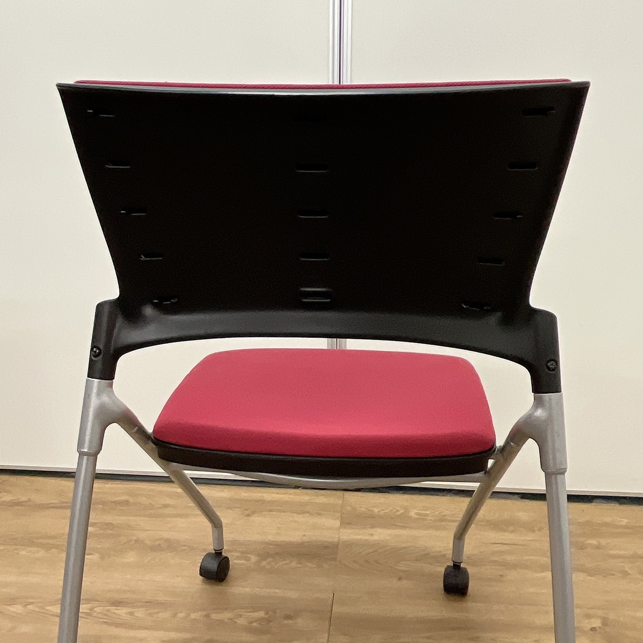 レッドクッションとブラックのフレームがおしゃれなカラーリングのネスティングチェアでございます。